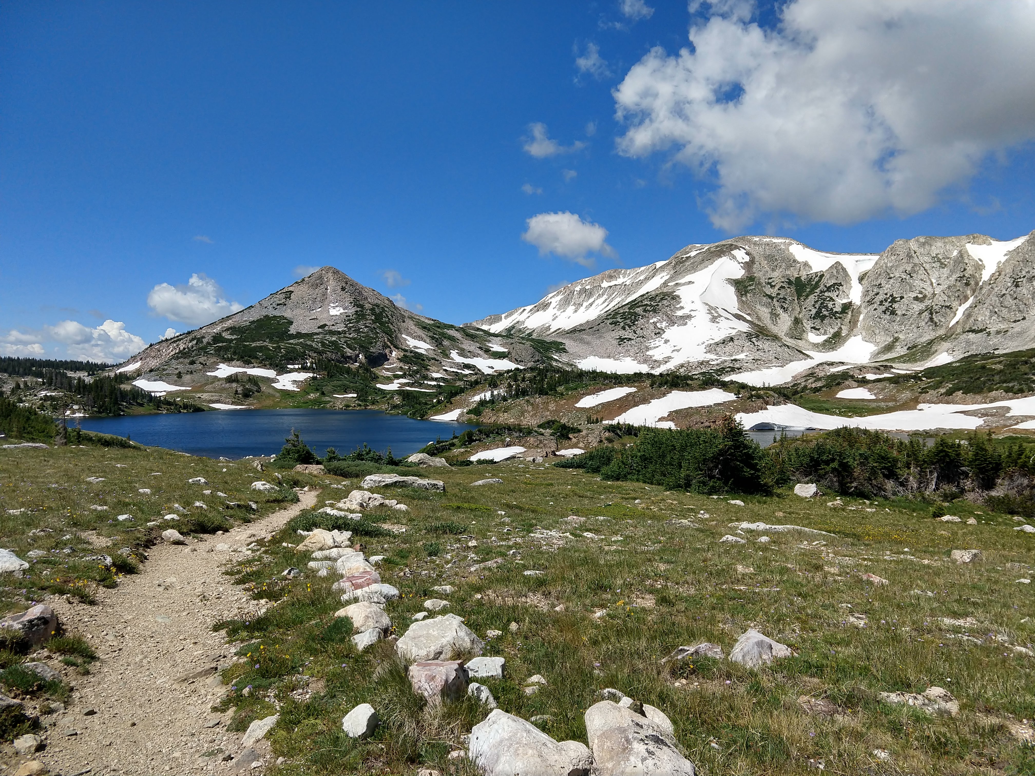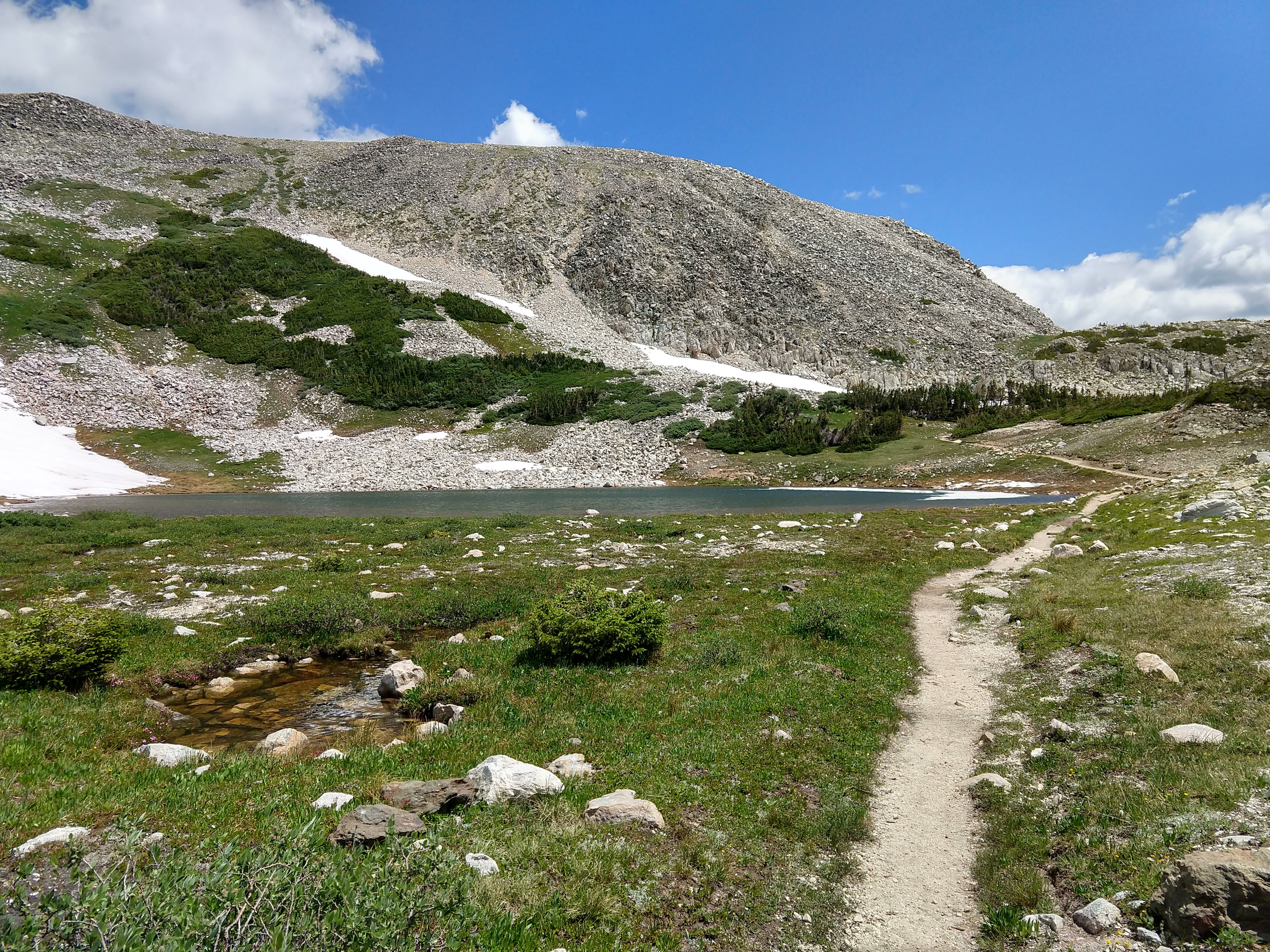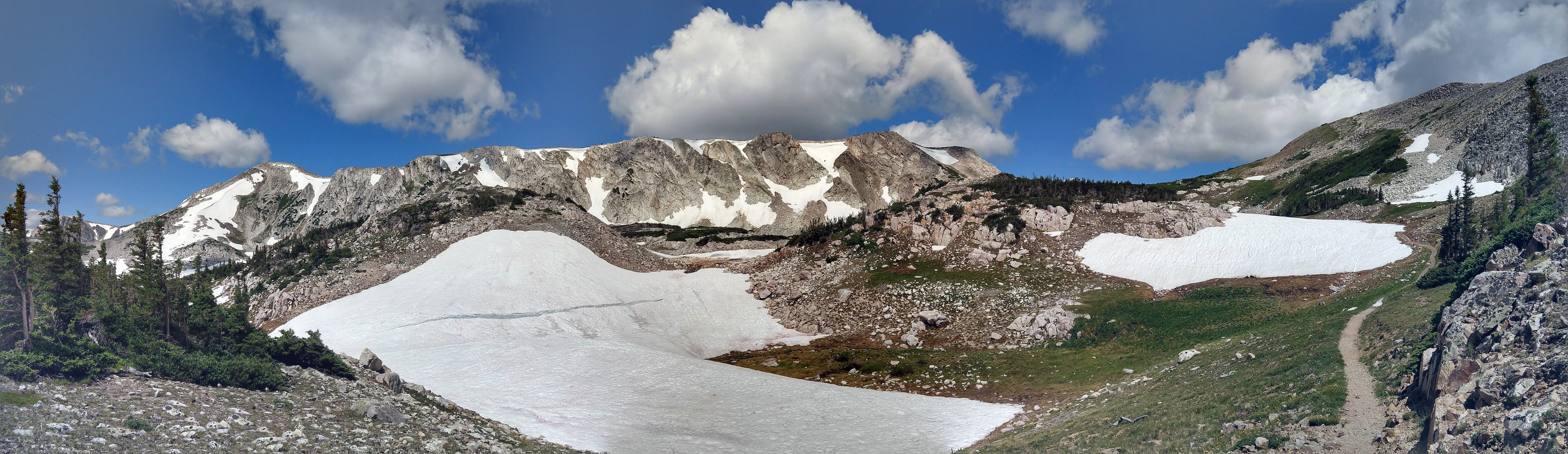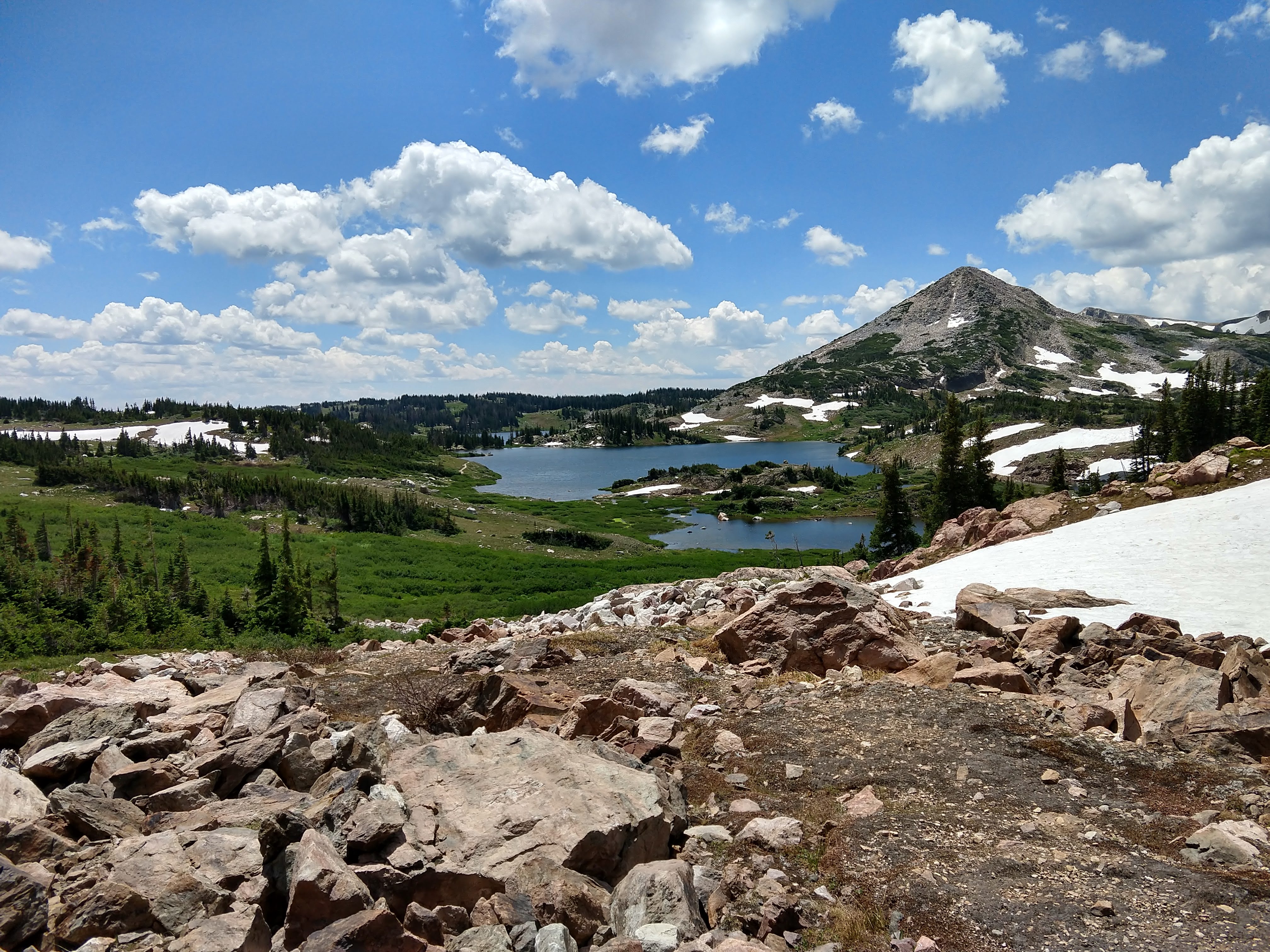 Sunday afternoon hike up to the Gap Lakes in the Medicine Bow National Forest in Wyoming. This is a easy, non-technical hike. The trail offers panoramic views of the Snowy Range. Once you hit the saddle separating North and South Gap Lakes, you gain additional panoramic views looking northward. The roughly 5.2 mile round-trip took about 2hr 55min.