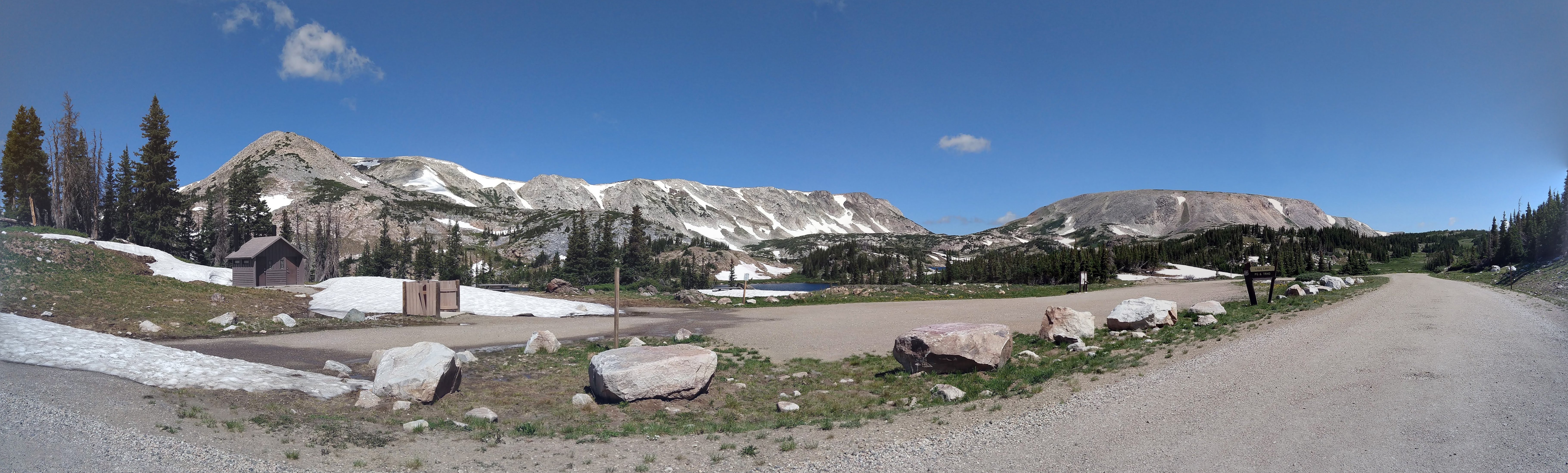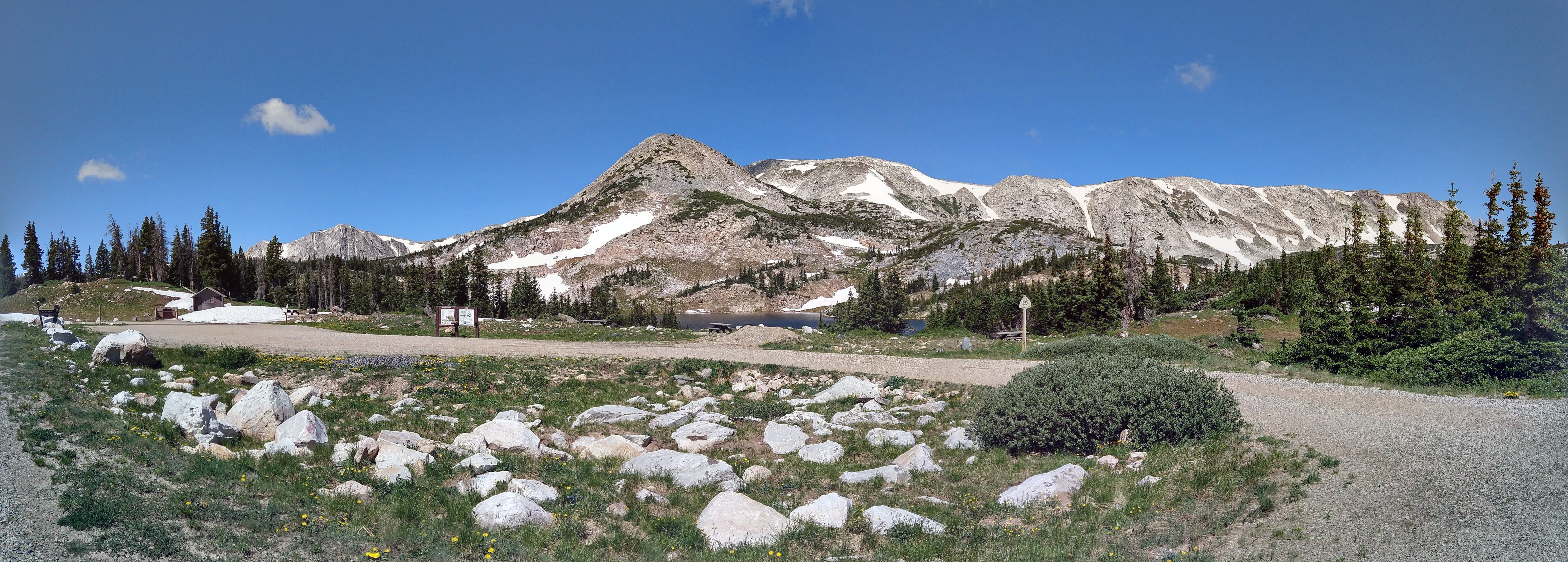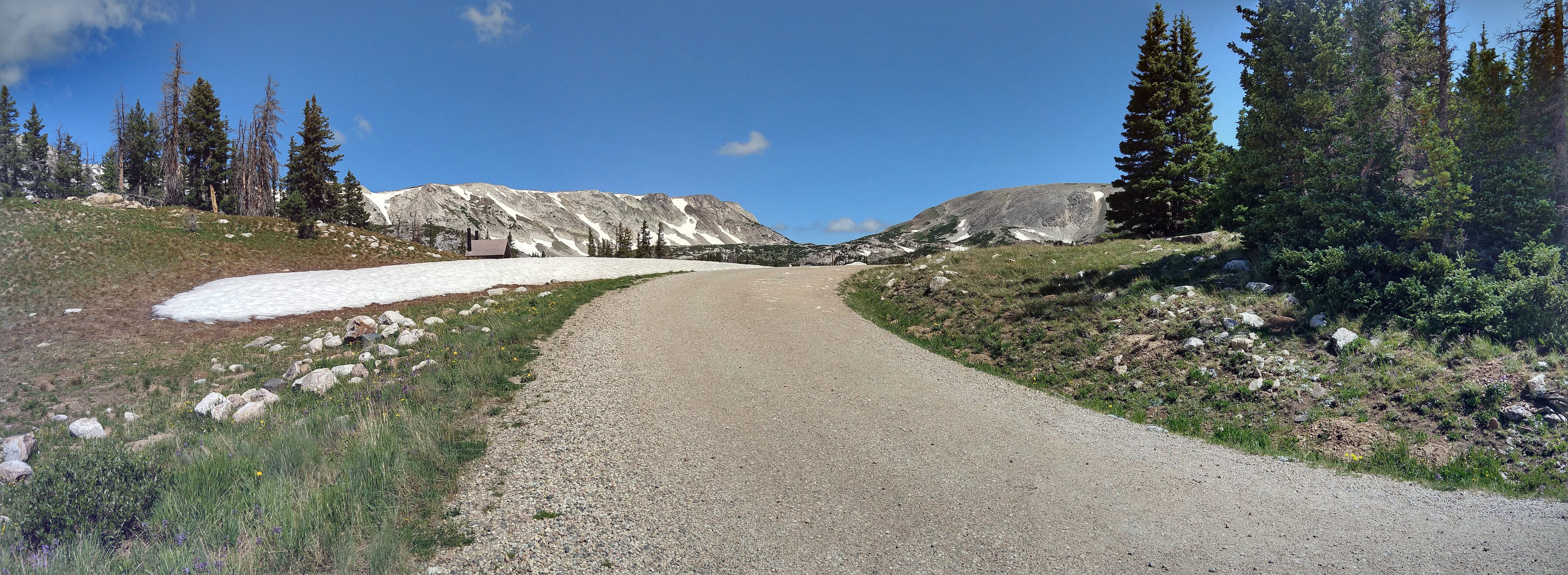 I departed the parking around around 10:50AM, after reshuffling my gear. From the trailhead, you walk on the closed off road through to Lewis Lake. You still get some good panoramic views of Snowy Range along the road so you wont be disappointed. The following pictures give you a sampling of the views.