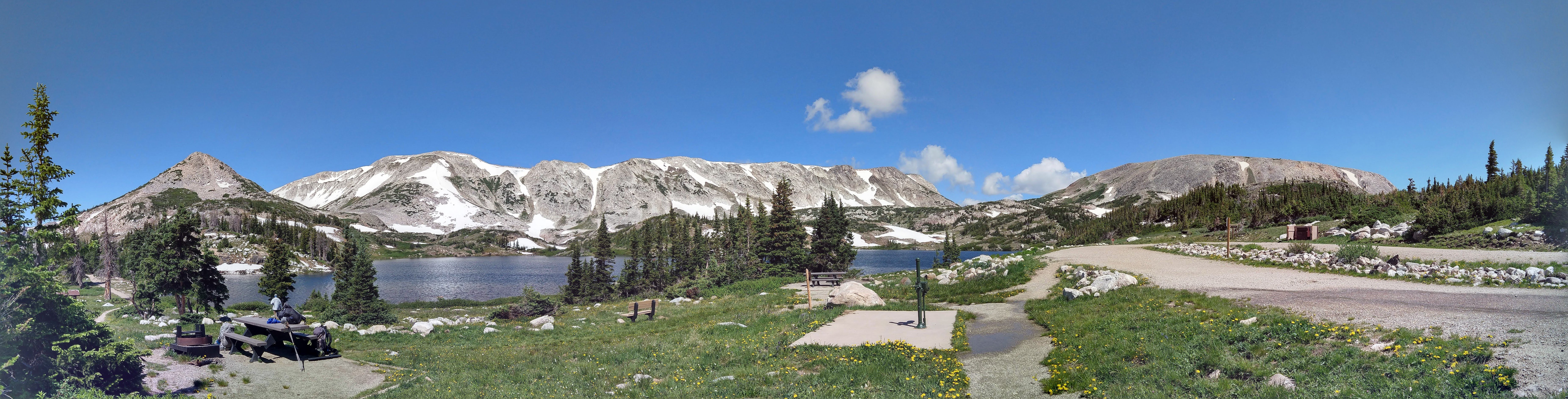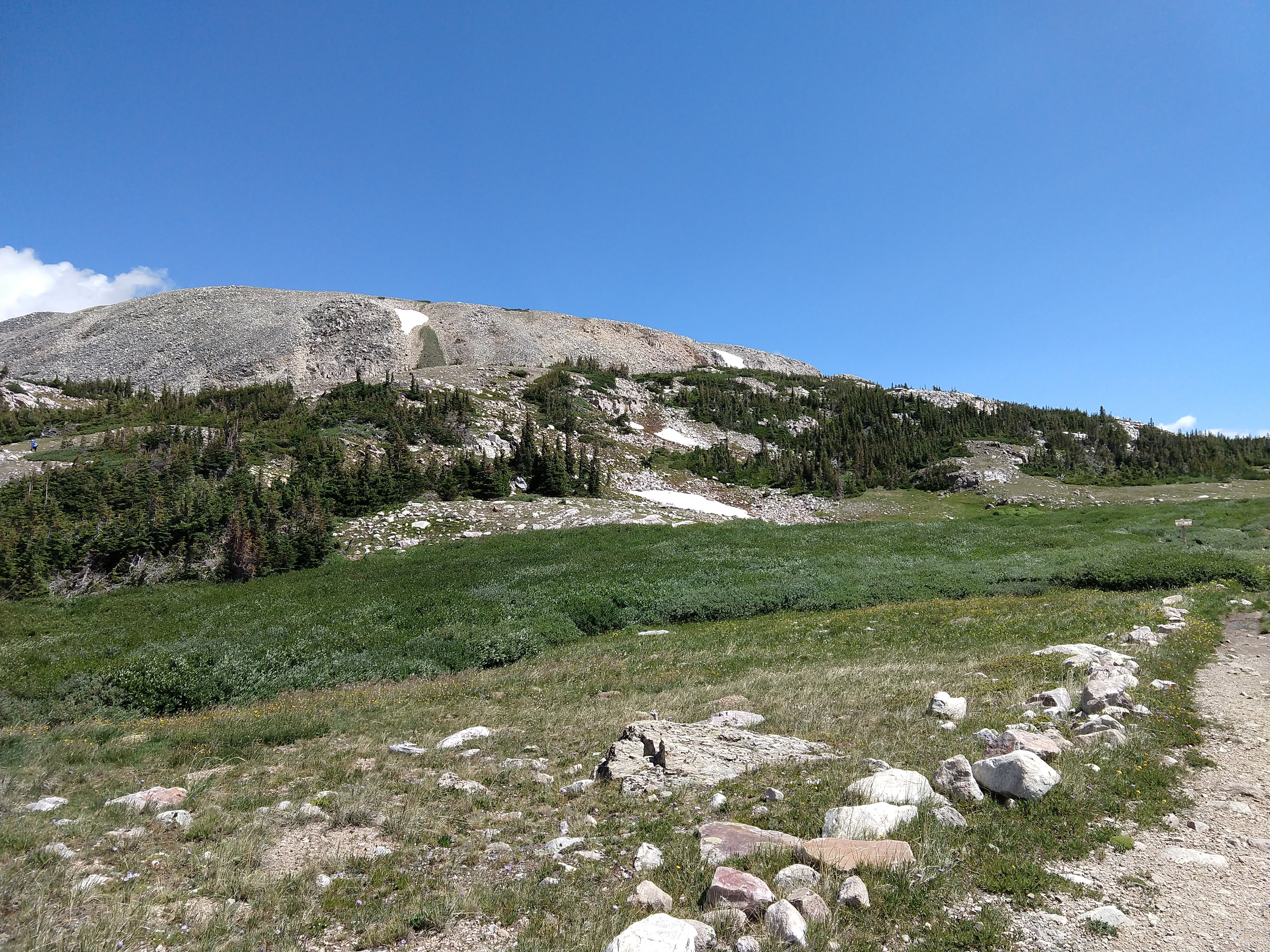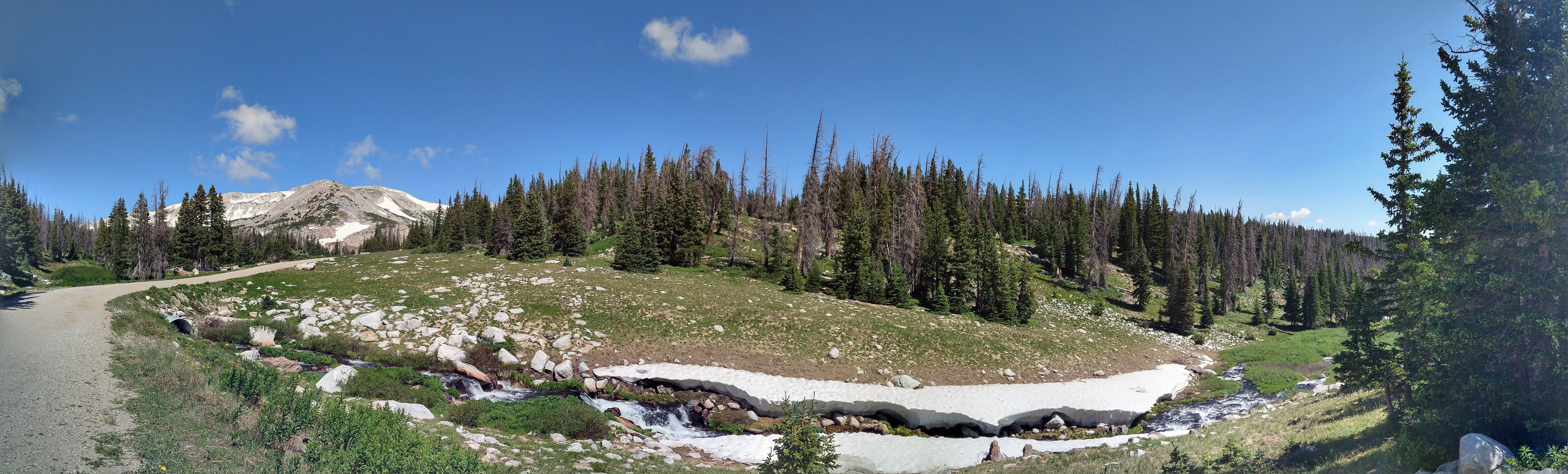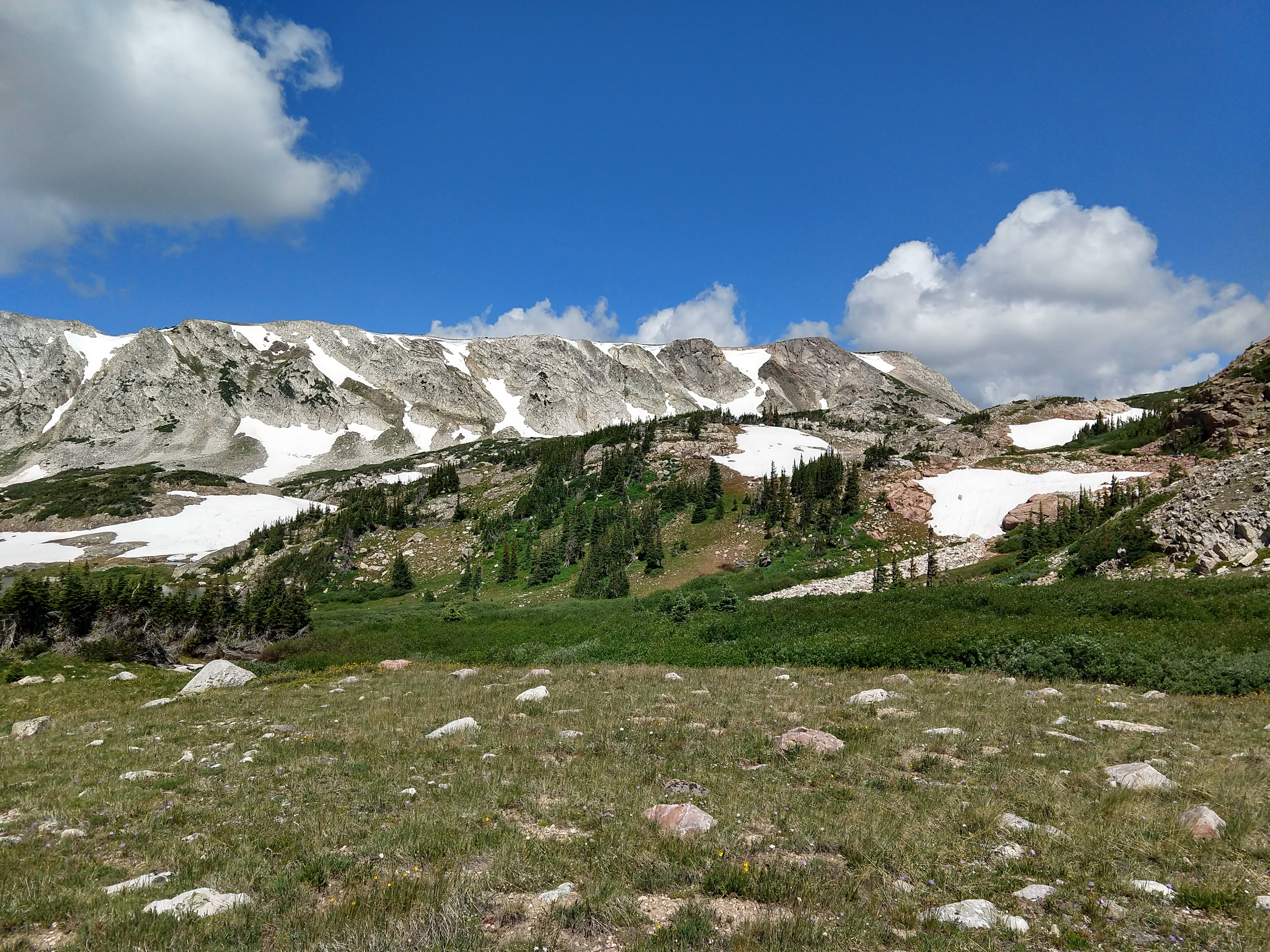 I departed the parking around around 10:50AM, after reshuffling my gear. From the trailhead, you walk on the closed off road through to Lewis Lake. You still get some good panoramic views of Snowy Range along the road so you wont be disappointed. The following pictures give you a sampling of the views.