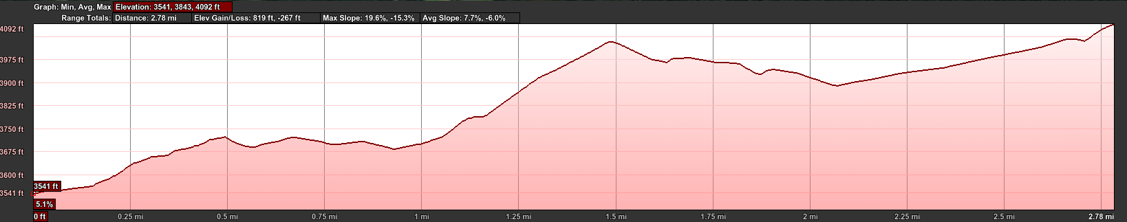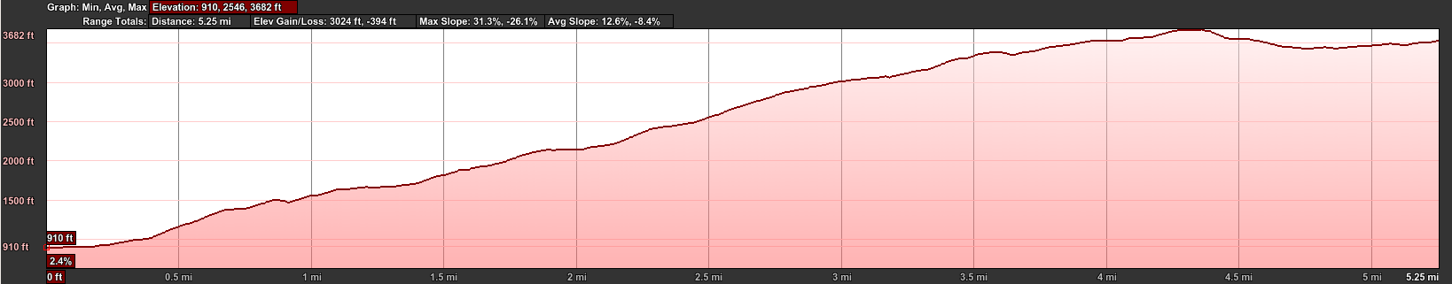 The following pictures should give you an idea of the variety of trail, the surrounding environment and what the signage of the trail is like. During this first portion I definitely missed a trail marking and spent some time figuring out where the trail was and if I was on the appropriate trail I was supposed to be on. Eventually I found a trail that took me into my primary trail or after walking a little further I saw my next Knafelc. As you can see from the elevation profile above, its pretty much all uphill from the start.