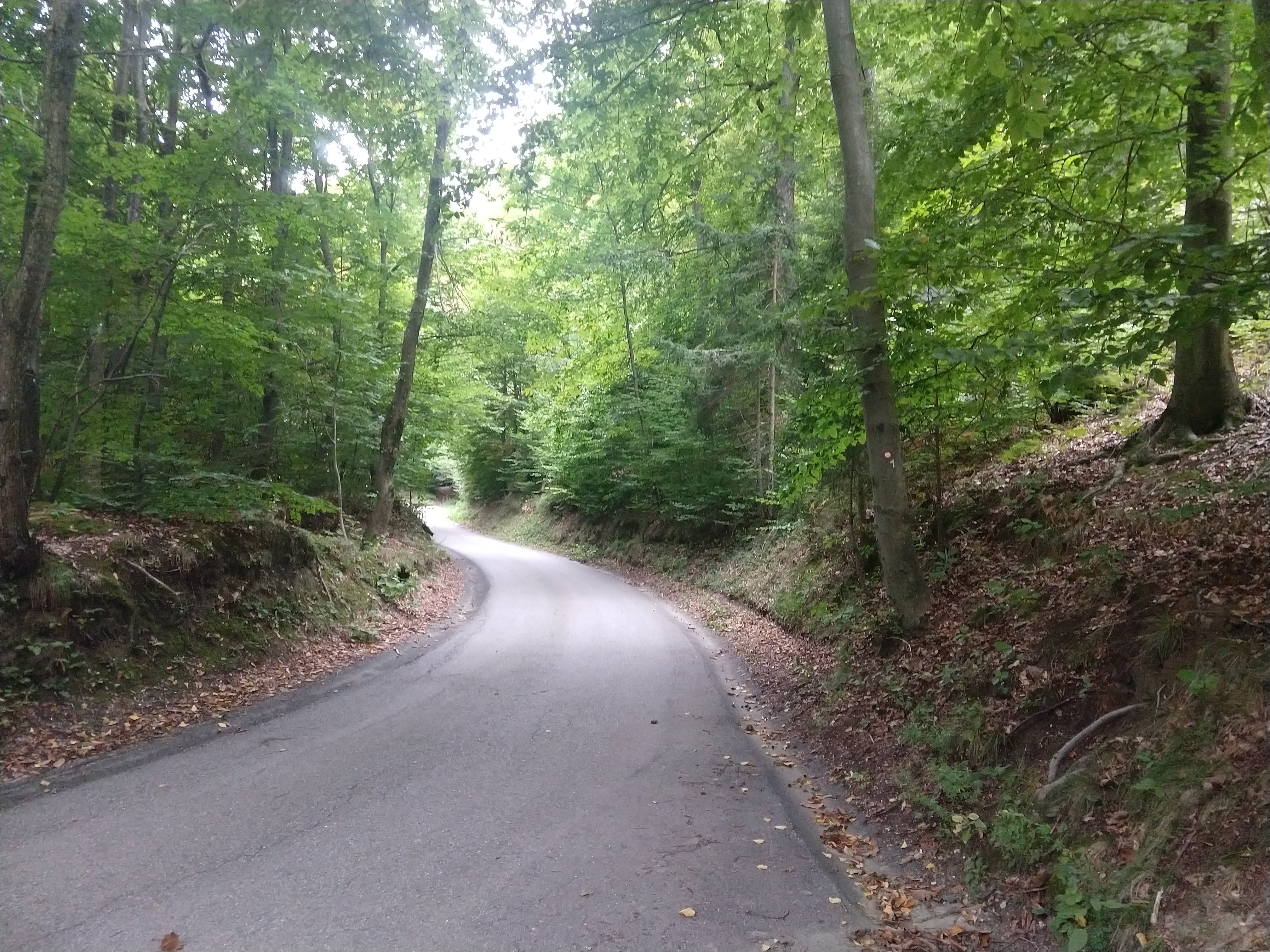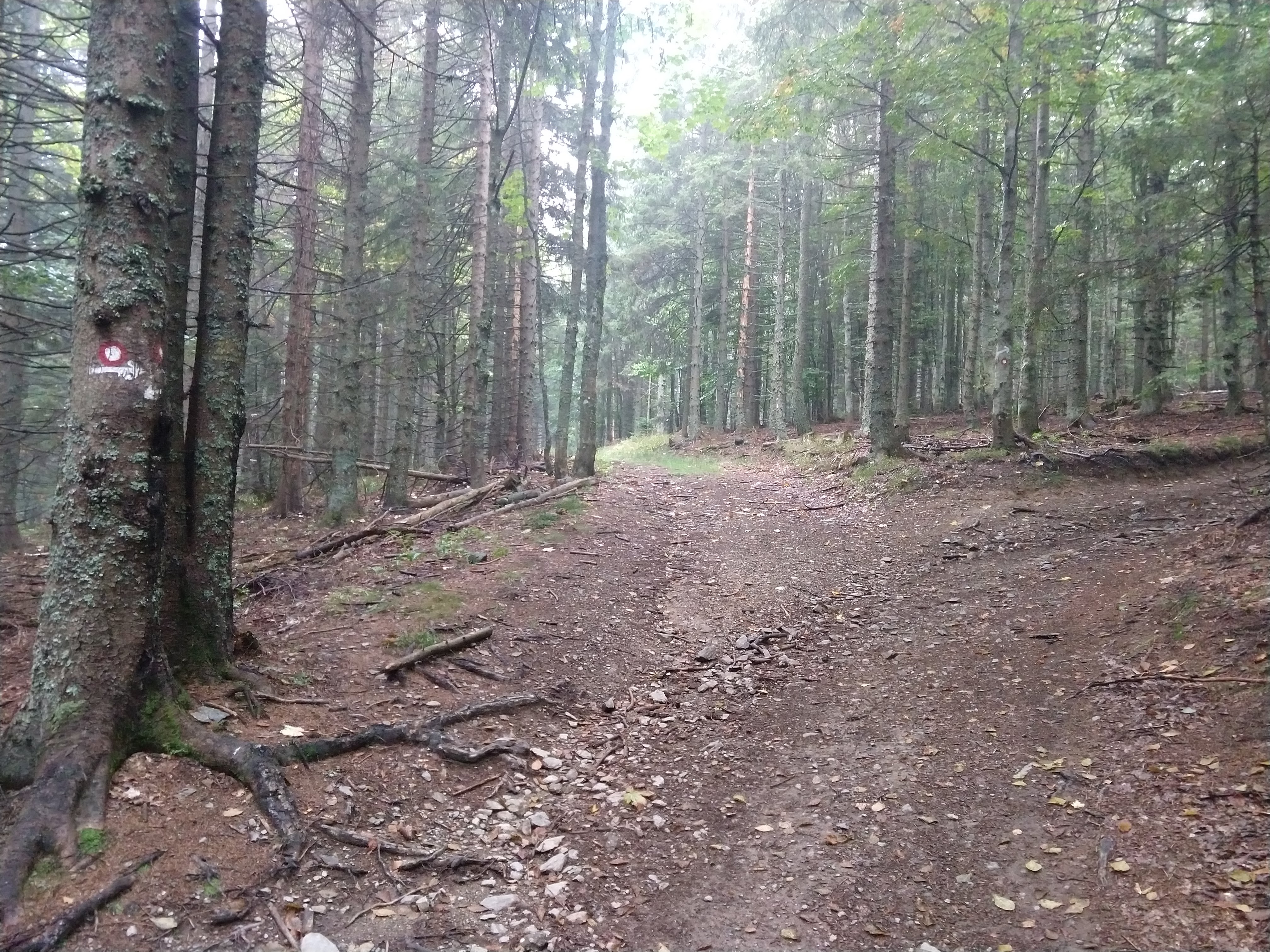 During this portion you are also walking on roads and through areas with mountain cabins. This would not be uncommon for a lot of the hiking sections. A lot of times, the trail is on a long sections of forest road or even paved maintained road. This is quite different from what most in the US would consider for hiking trails. When the trail is not on the road it does vary in condition, composition, as well as width.