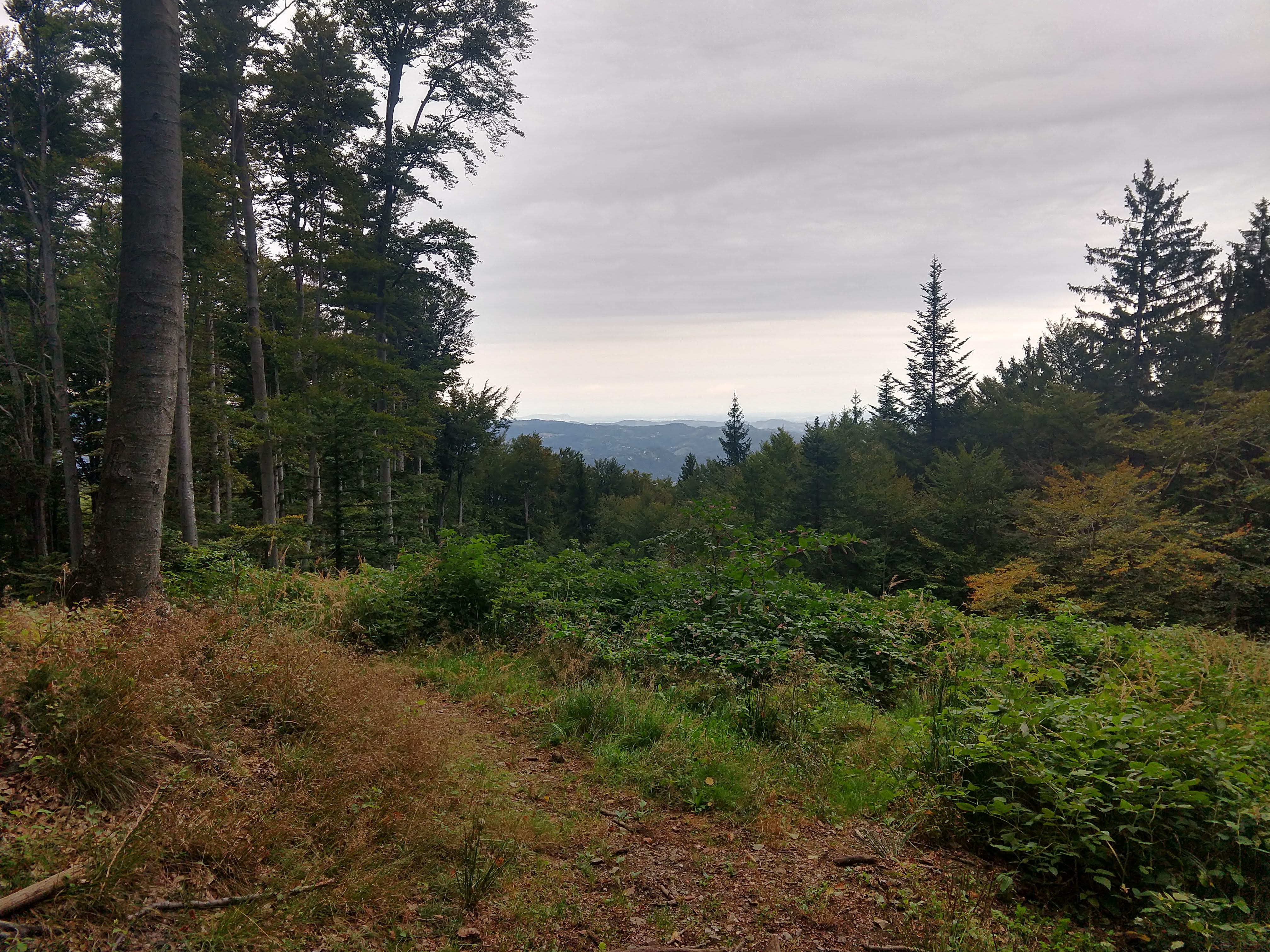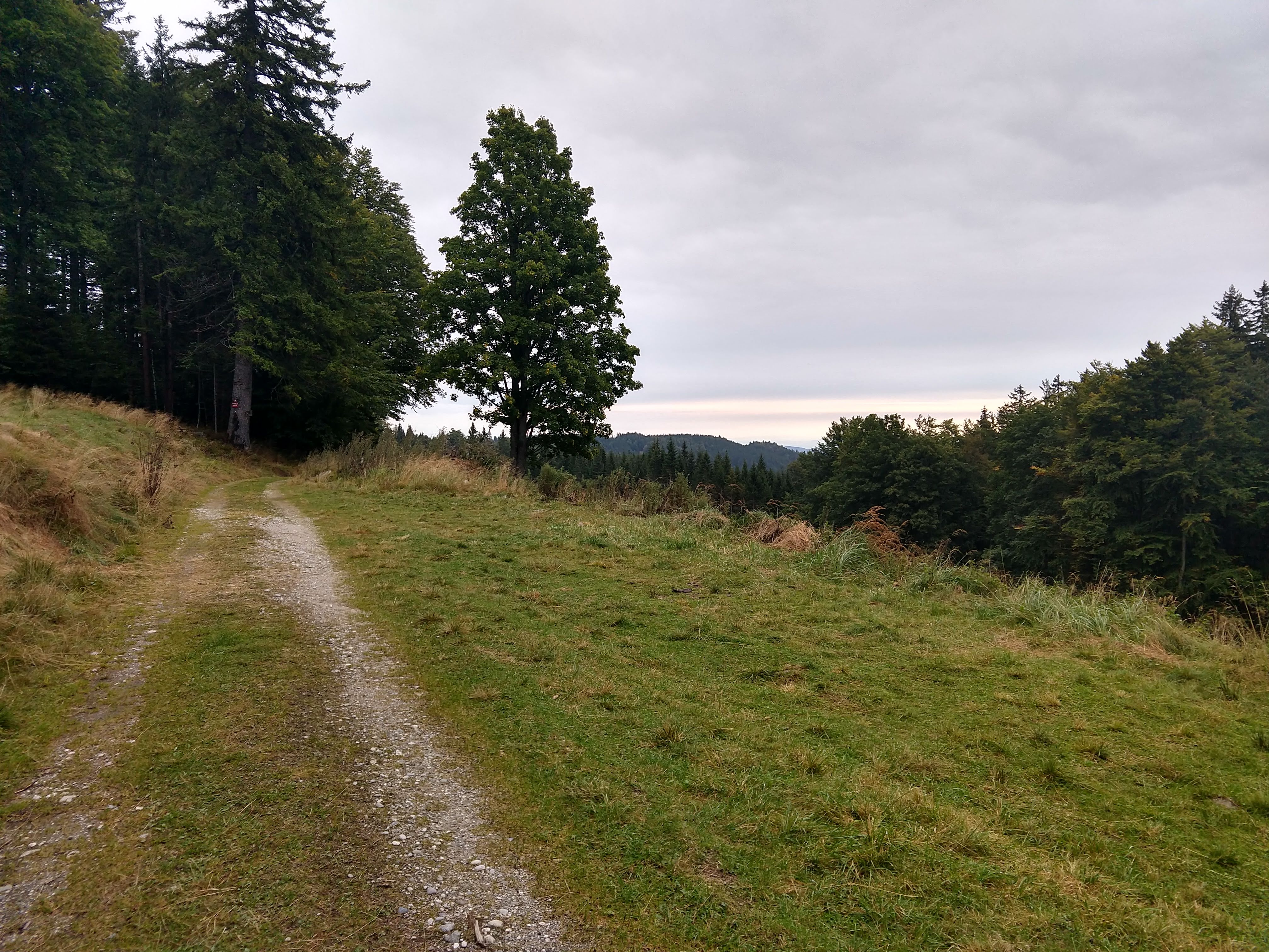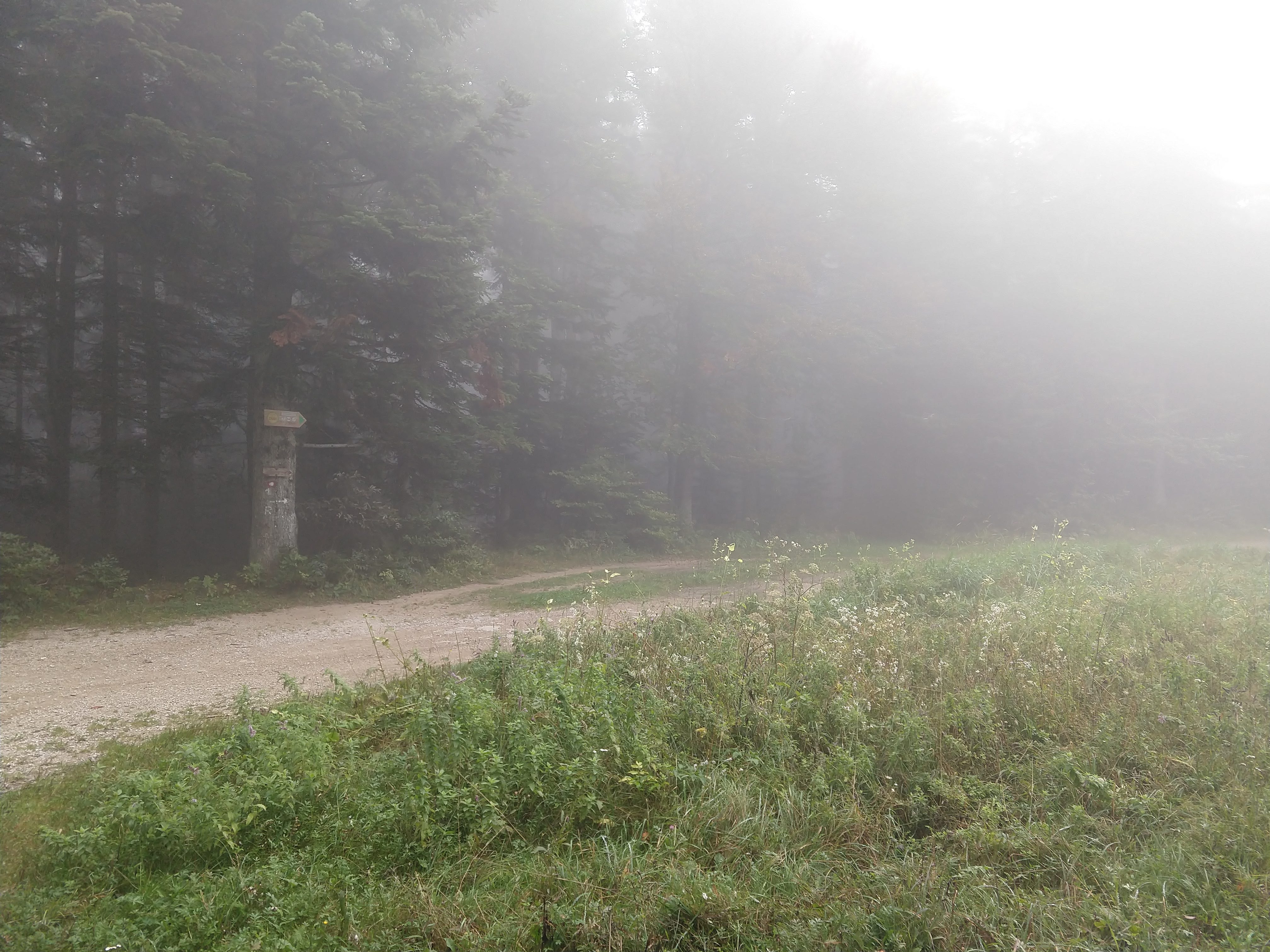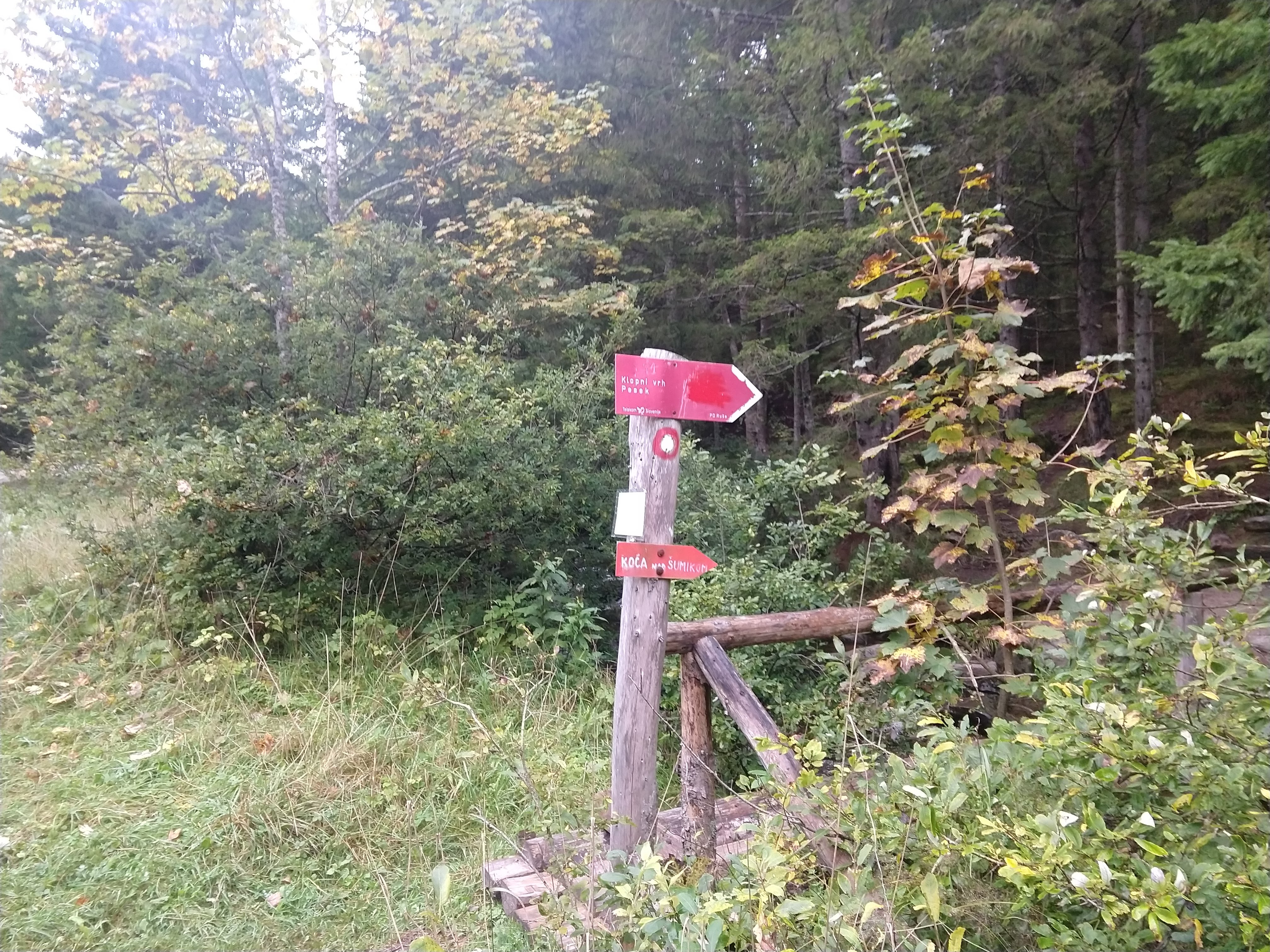 The following pictures are from the next section. During this portion the visibility had certainly cleared up so I could see a little more of the surrounding landscape. As I got closer to Koča na Klopnem vrhu, I noticed a trail split for Pesek (Dom na Pesku). After assessing the time and my exhaustion I decide to skip the additional 1-2km an just get to my final destination.