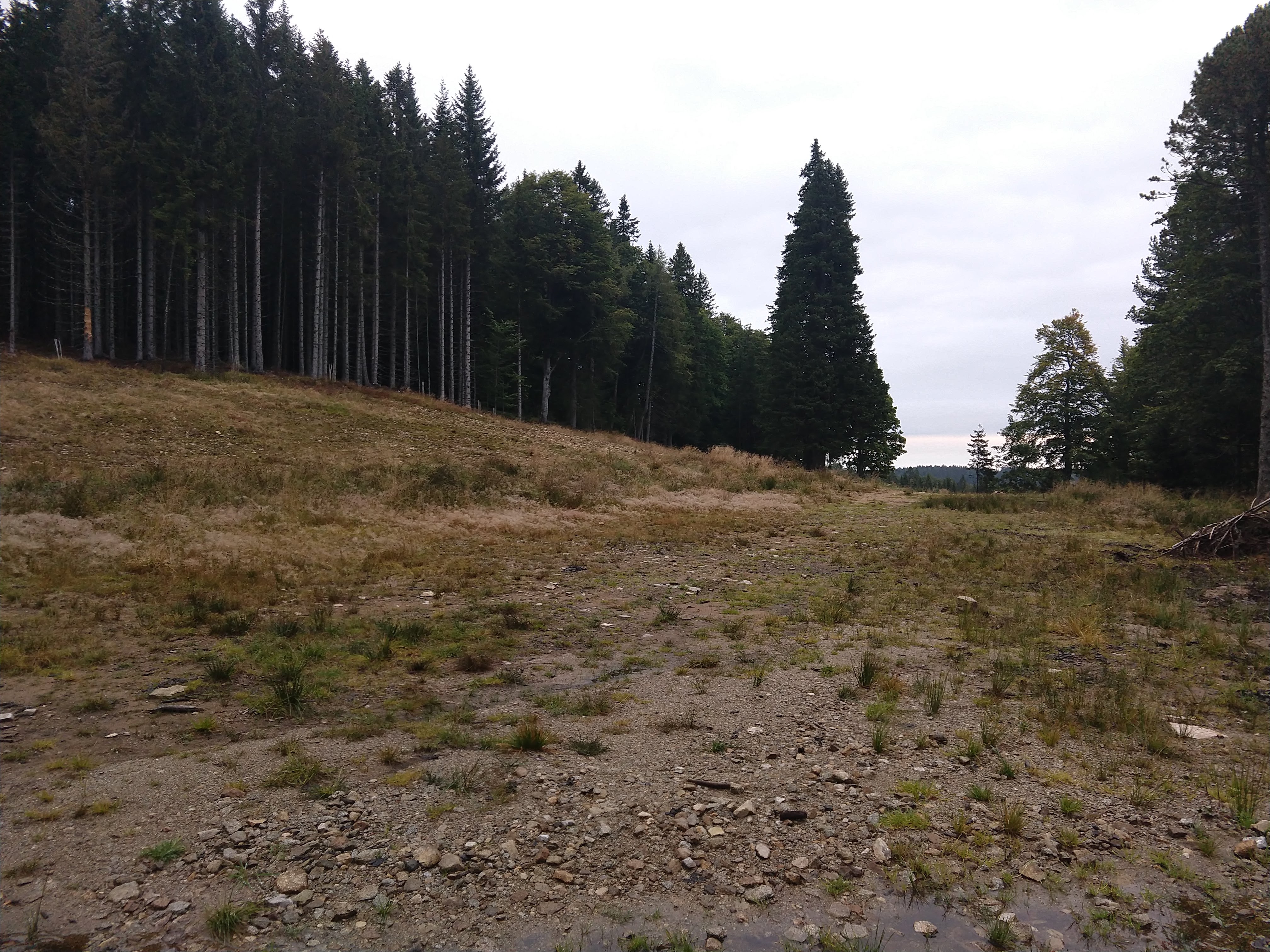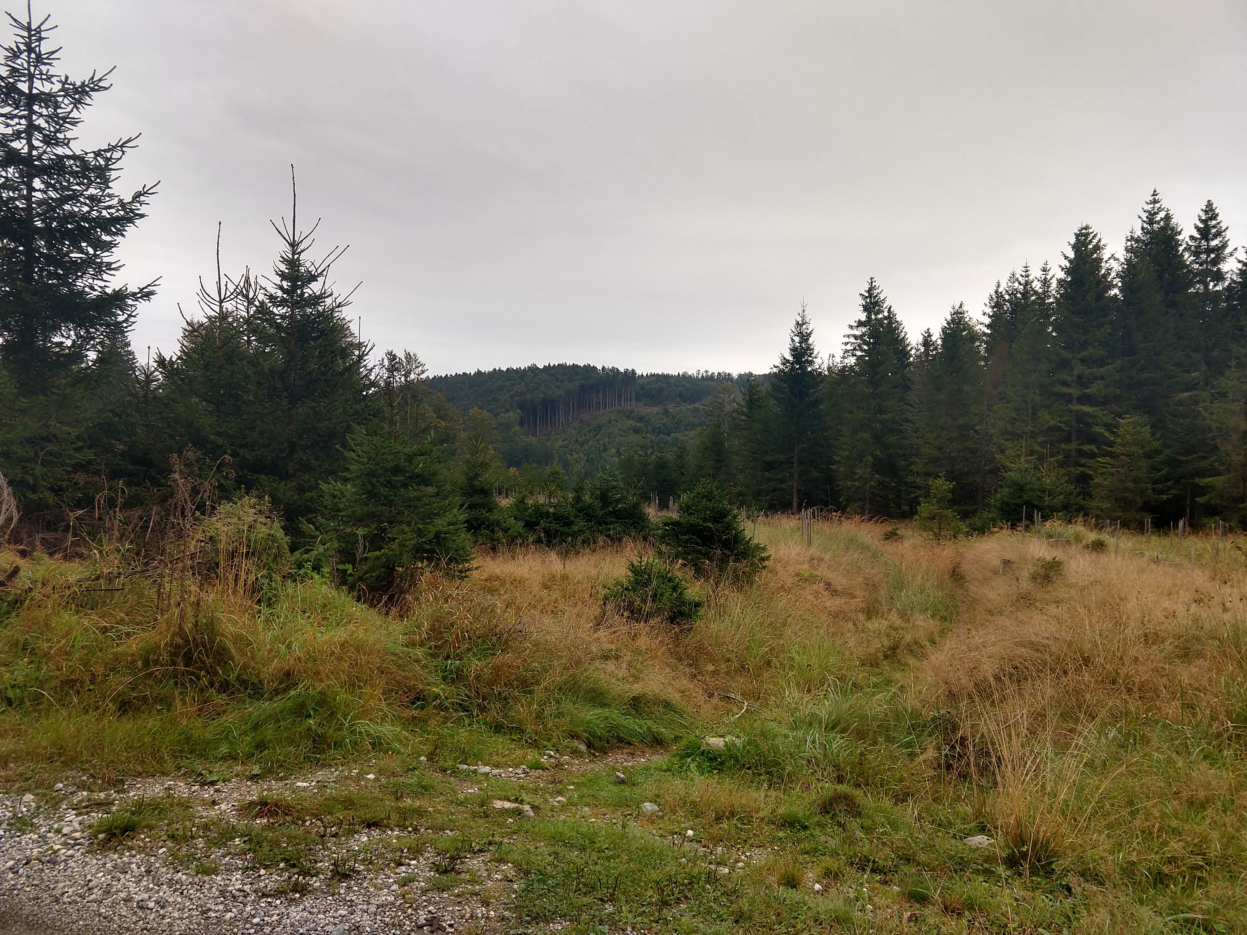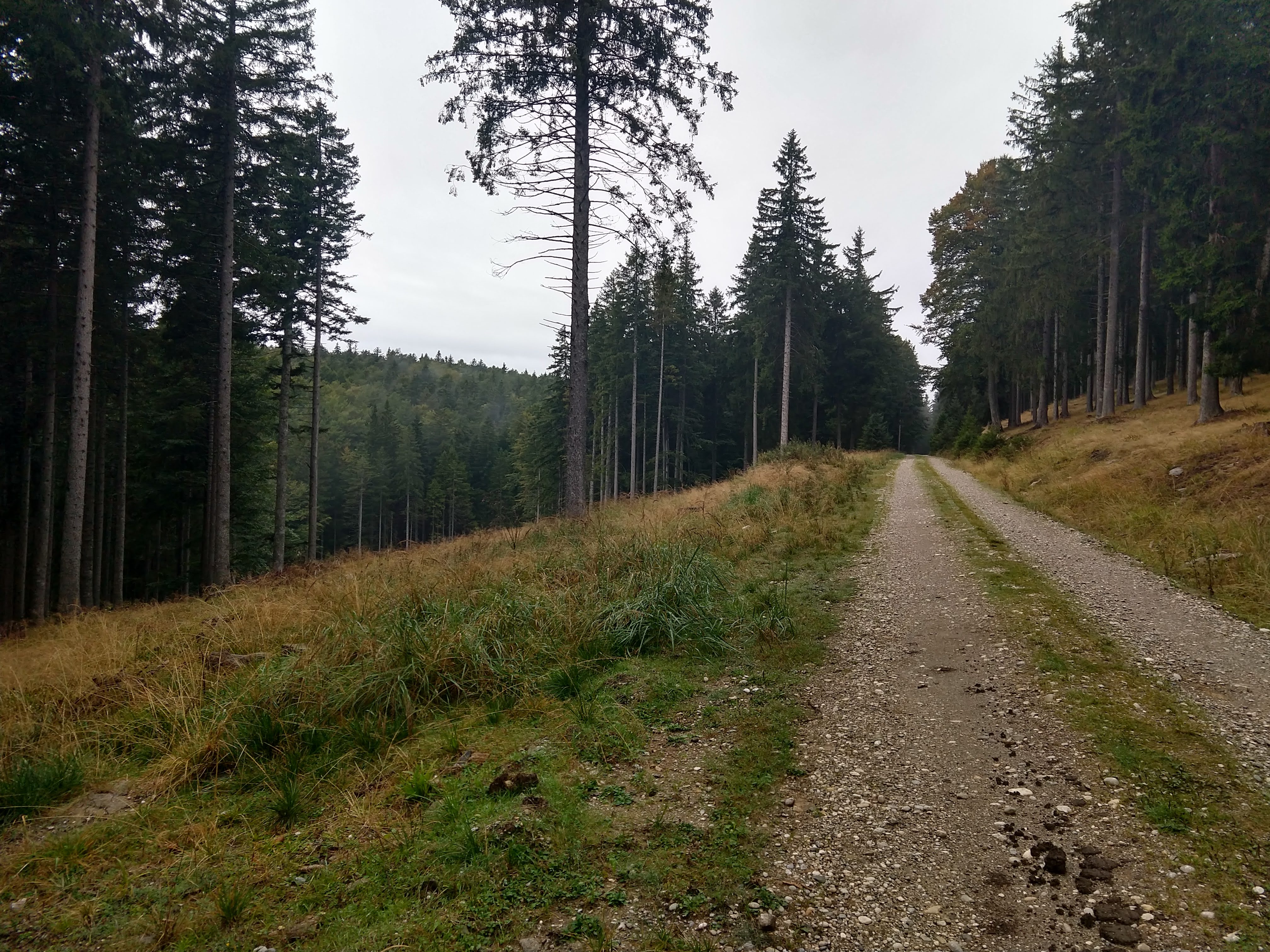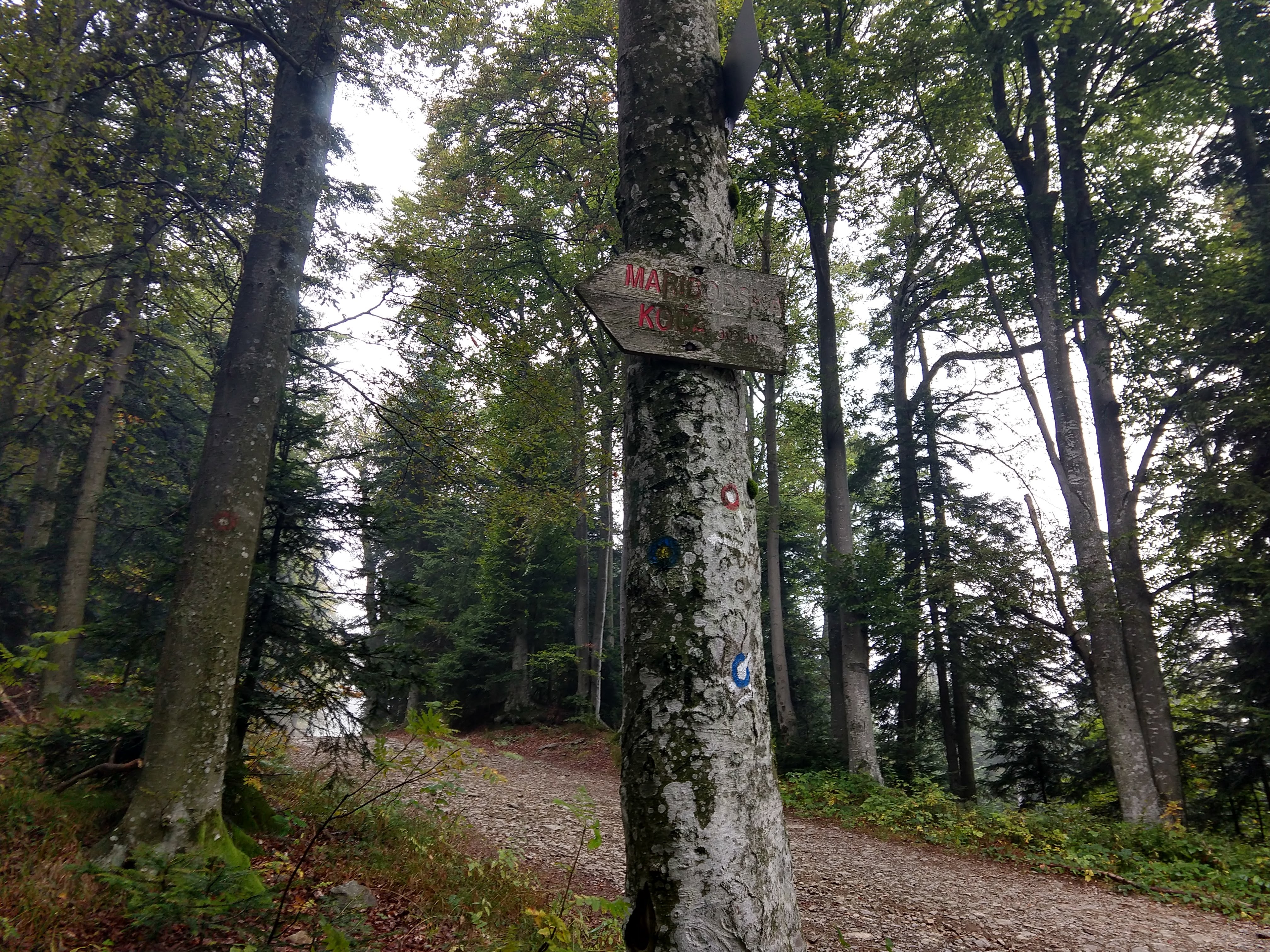 The following pictures are from the next section. During this portion the visibility had certainly cleared up so I could see a little more of the surrounding landscape. As I got closer to Koča na Klopnem vrhu, I noticed a trail split for Pesek (Dom na Pesku). After assessing the time and my exhaustion I decide to skip the additional 1-2km an just get to my final destination.
