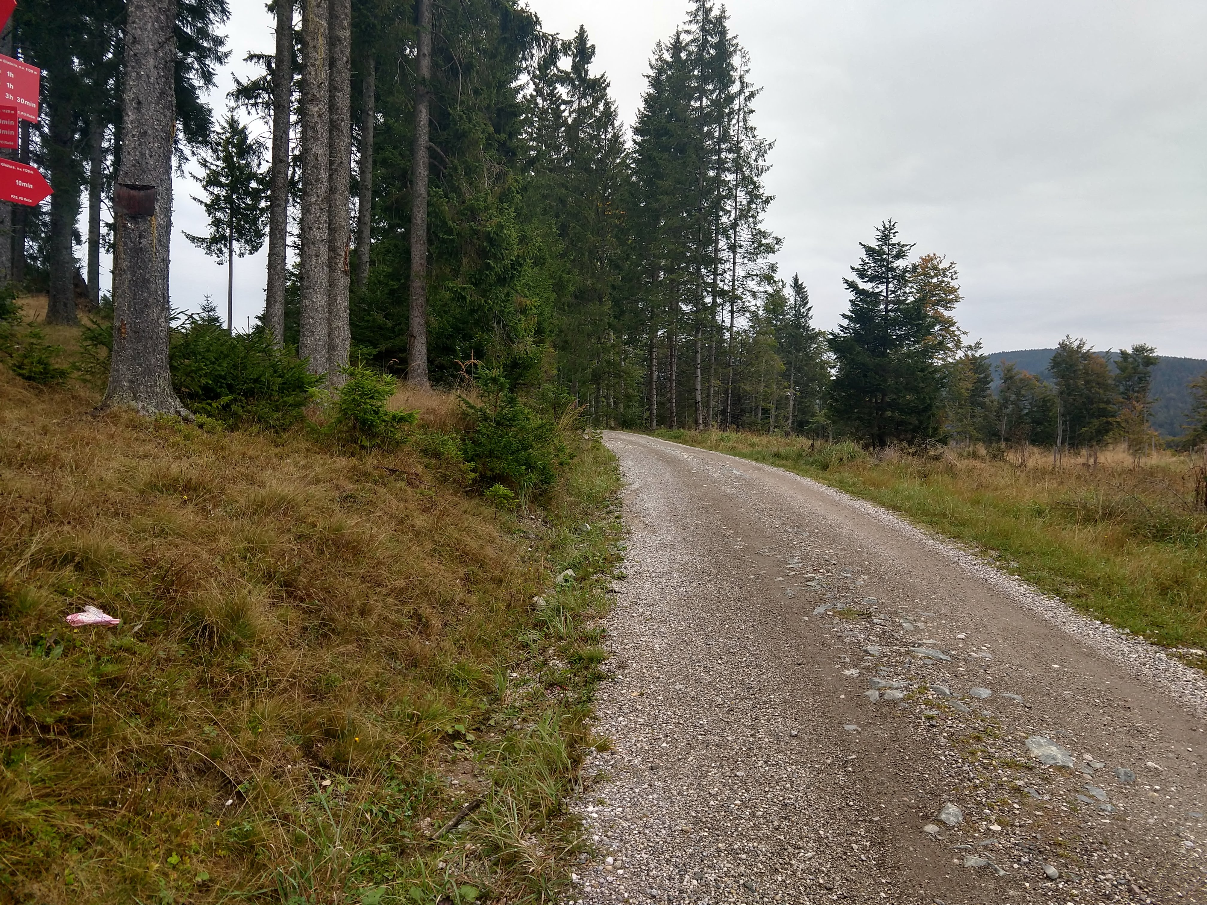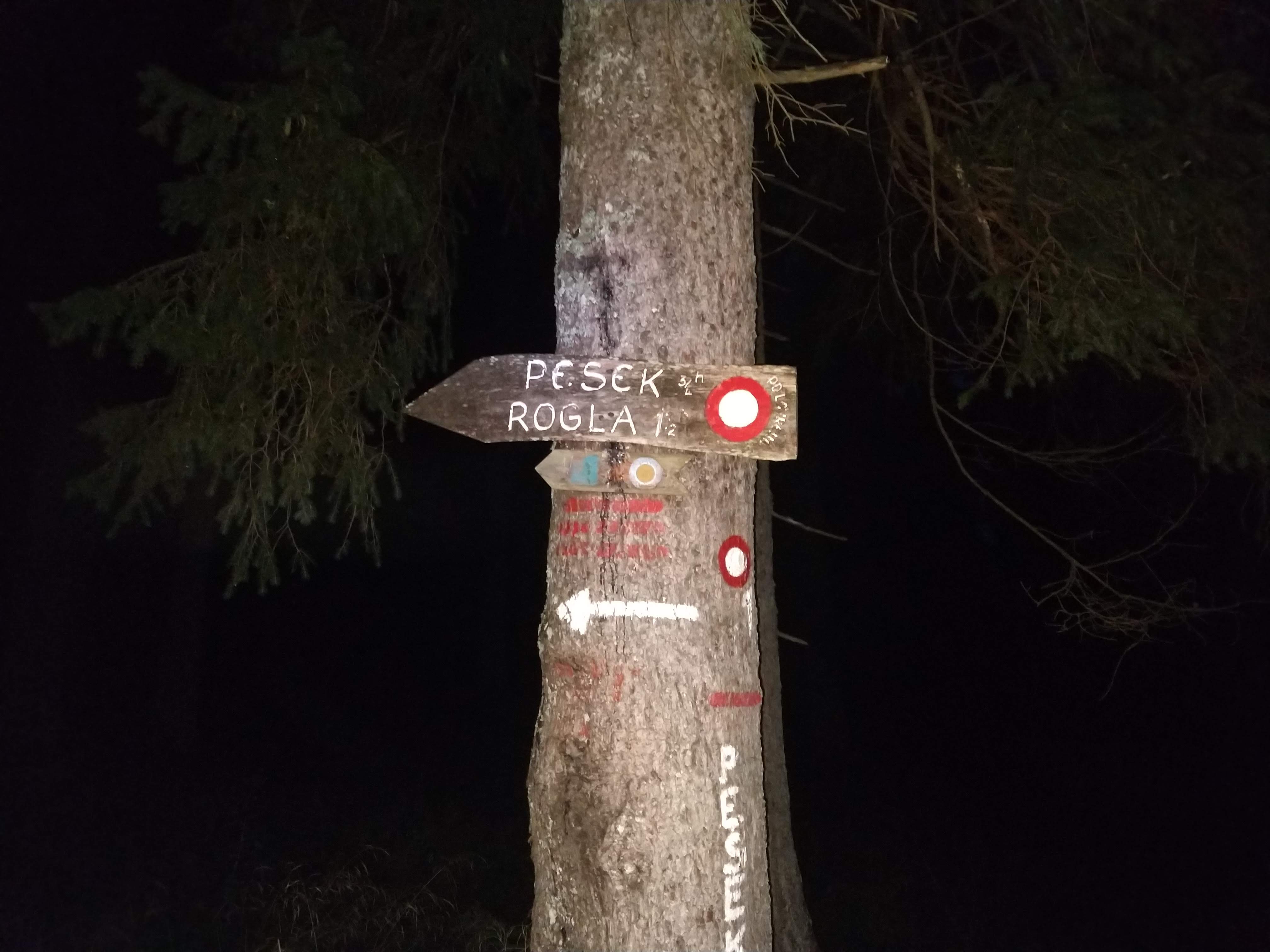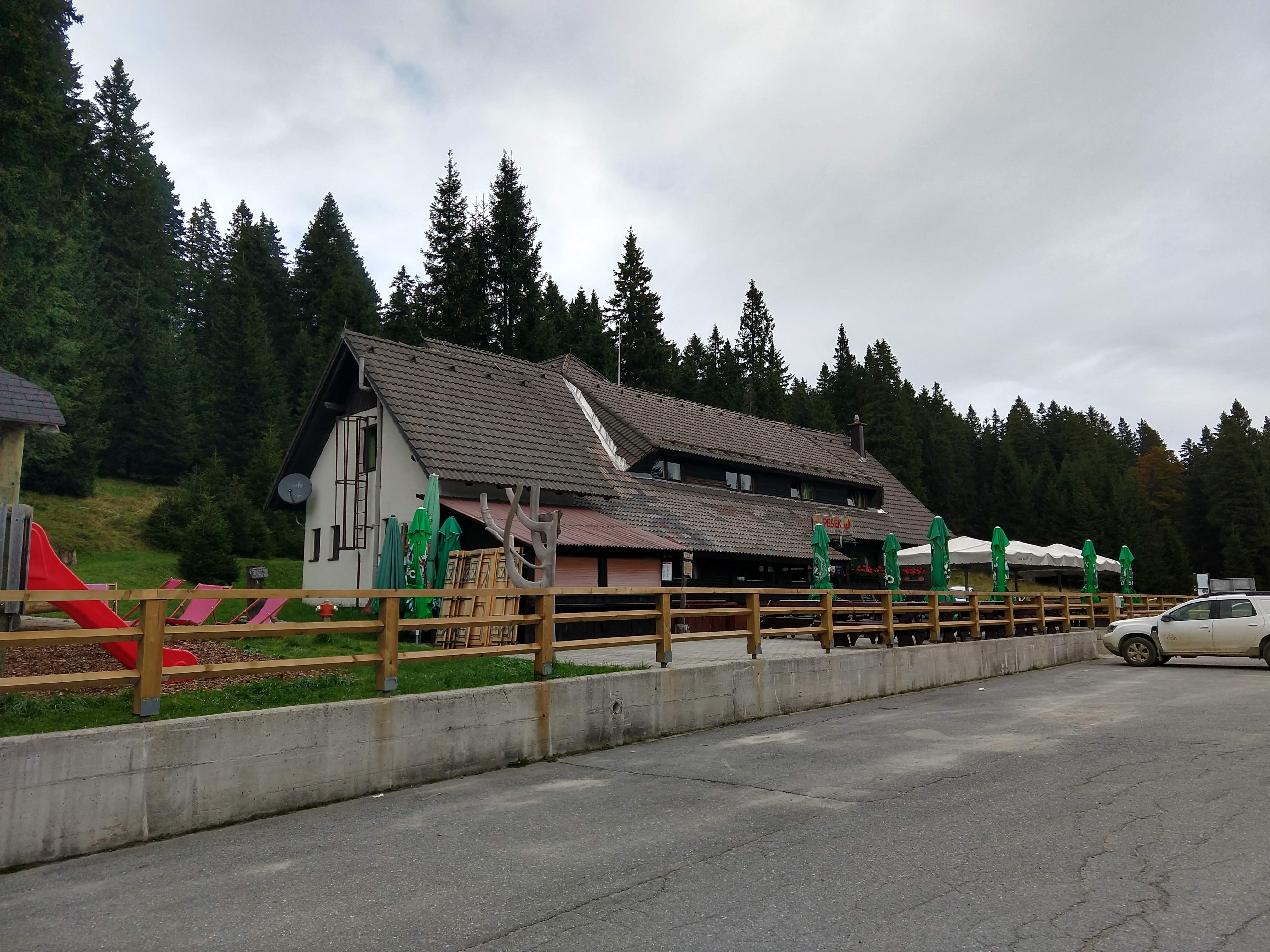 Around 1530 I had passed Ruška Koča without much of a stop. A little further up the trail I somehow deviated onto what I thought was the trail, but I was unable to track any trail blazes so I had to navigate on the trail I was on and head towards a road/trail that looked promising. Eventually I came to a road and noticed a sign that directed me toward Šumik. After walking down the forest road (with correct trail blazes) for a bit, I reached Pri Bajgotu (Šumik). I had already been hiking for 7 hours 9 minutes by this point and still had about 2 hours 30 minutes to get to Koča na Pesku. By this point I had also burned almost 5000 cal and was feeling pretty hungry for a solid meal that wasn’t a Cliff bar at my final destination.
