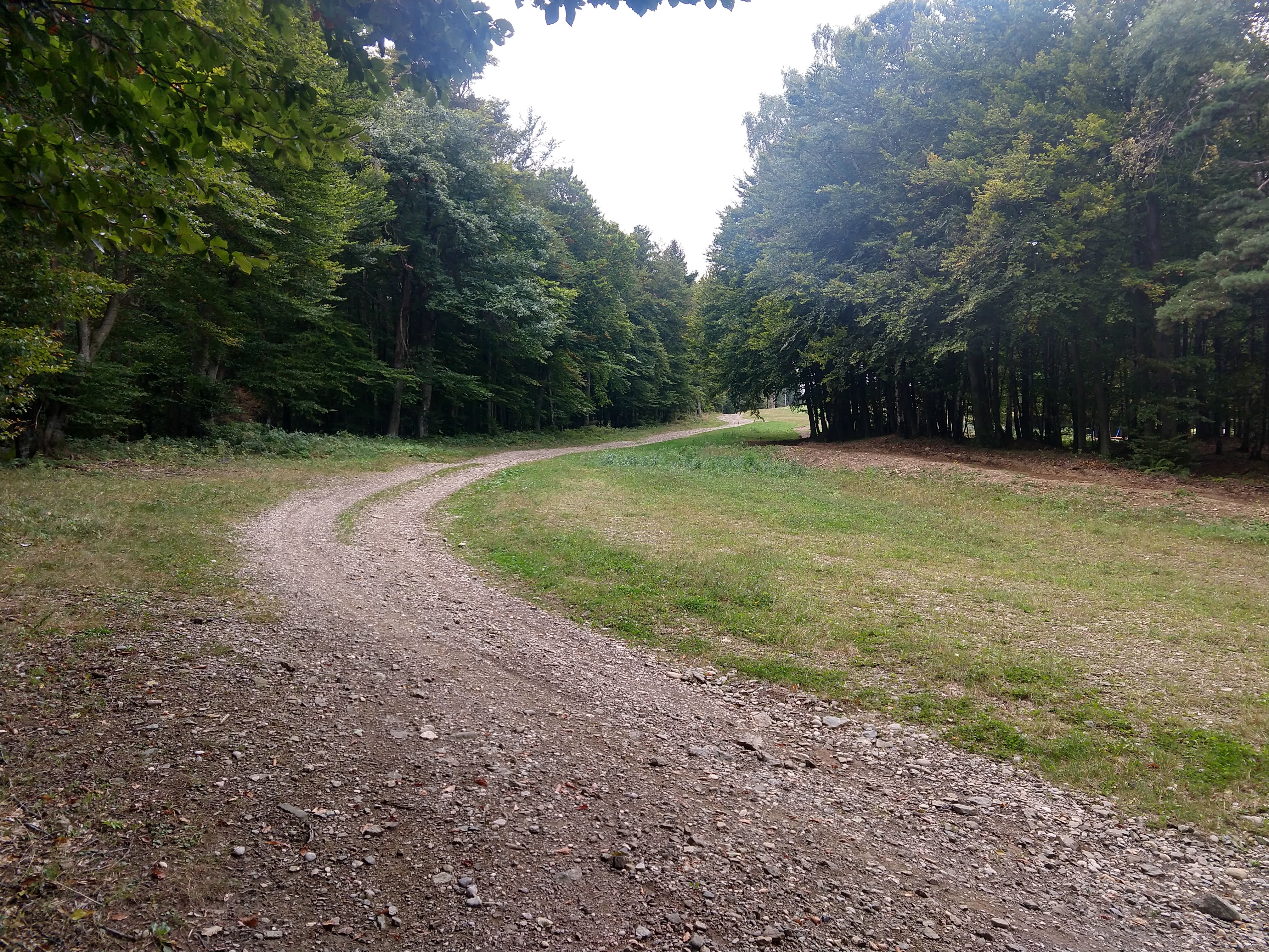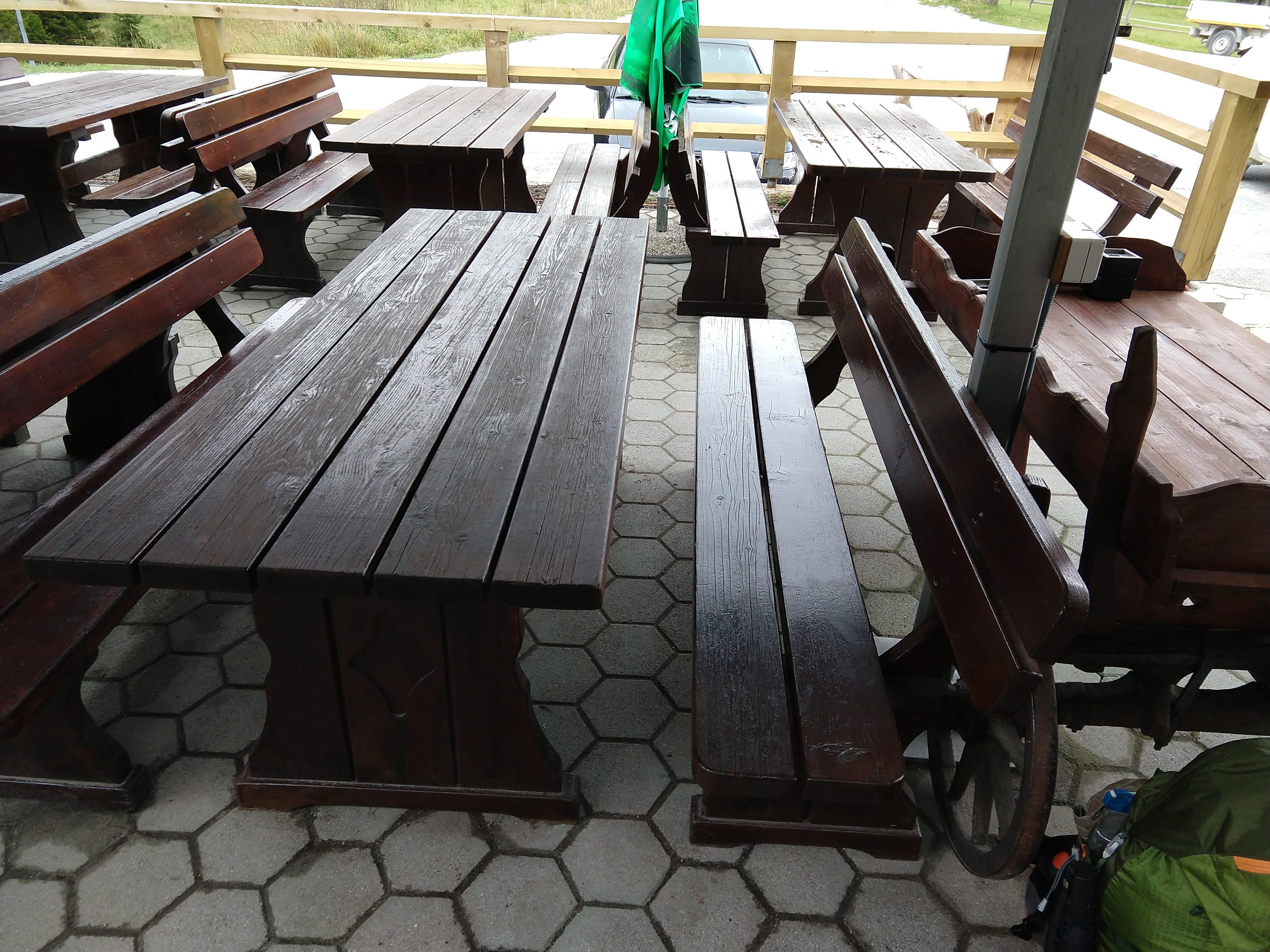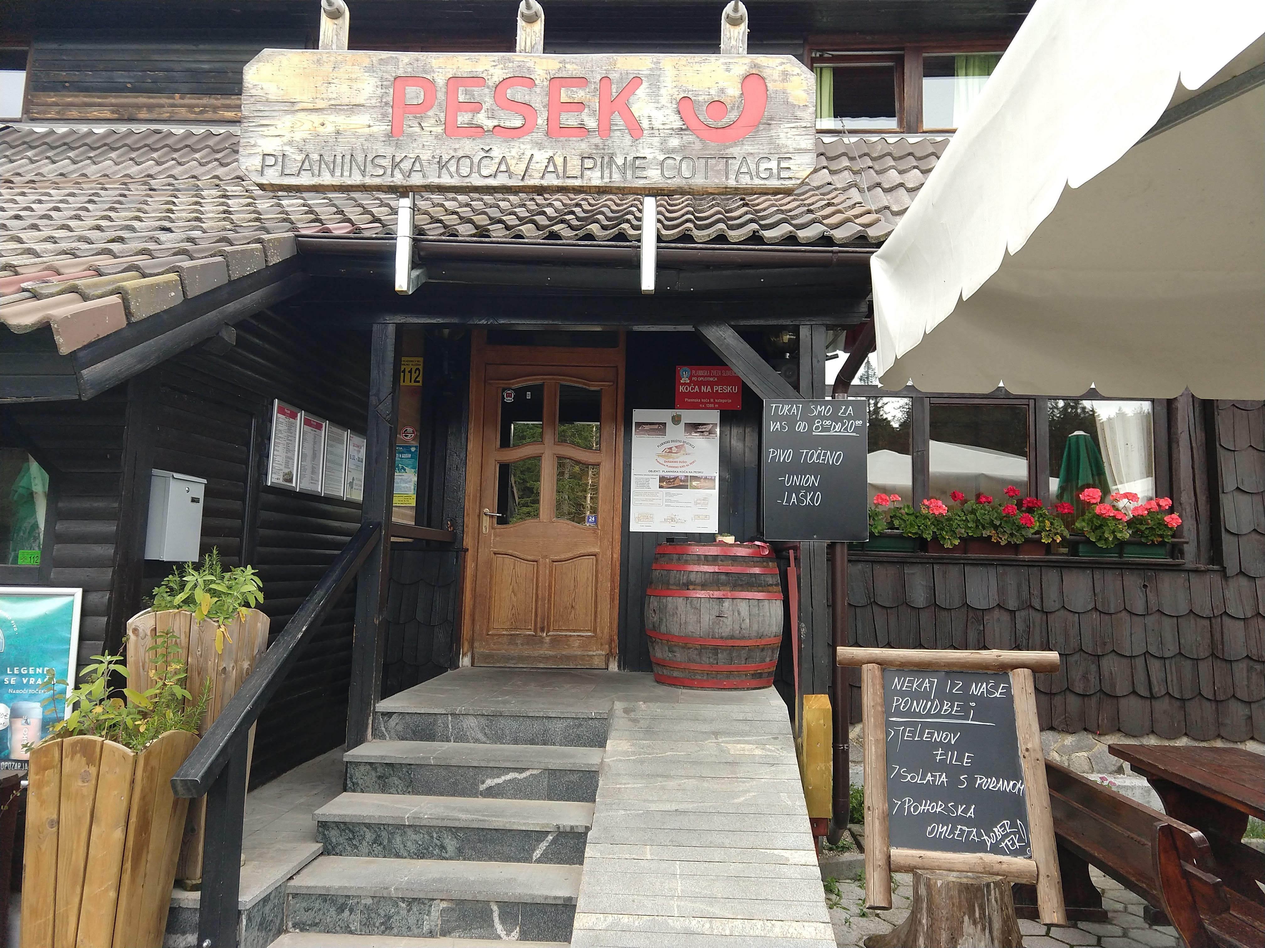 Around 1530 I had passed Ruška Koča without much of a stop. A little further up the trail I somehow deviated onto what I thought was the trail, but I was unable to track any trail blazes so I had to navigate on the trail I was on and head towards a road/trail that looked promising. Eventually I came to a road and noticed a sign that directed me toward Šumik. After walking down the forest road (with correct trail blazes) for a bit, I reached Pri Bajgotu (Šumik). I had already been hiking for 7 hours 9 minutes by this point and still had about 2 hours 30 minutes to get to Koča na Pesku. By this point I had also burned almost 5000 cal and was feeling pretty hungry for a solid meal that wasn’t a Cliff bar at my final destination.