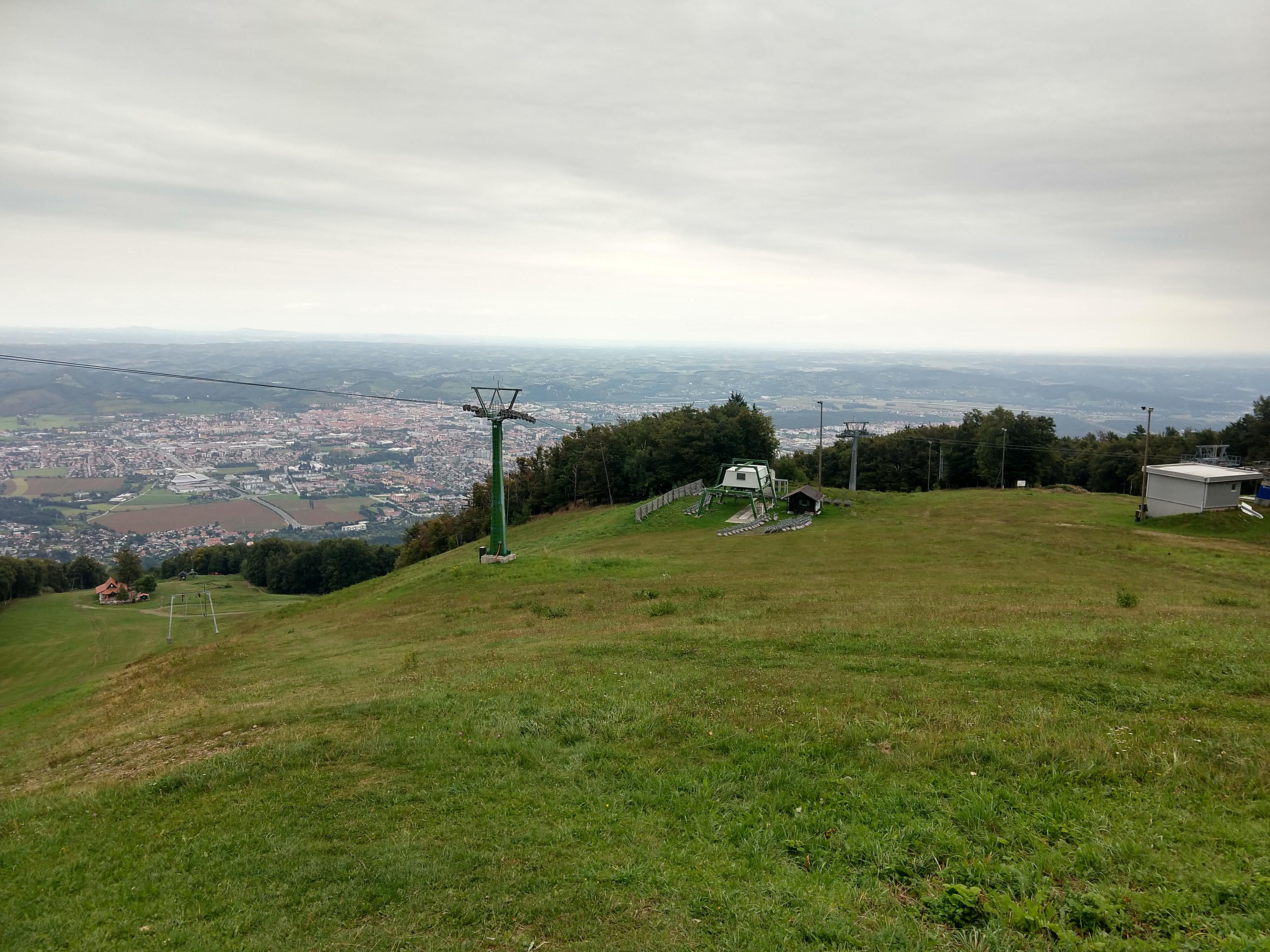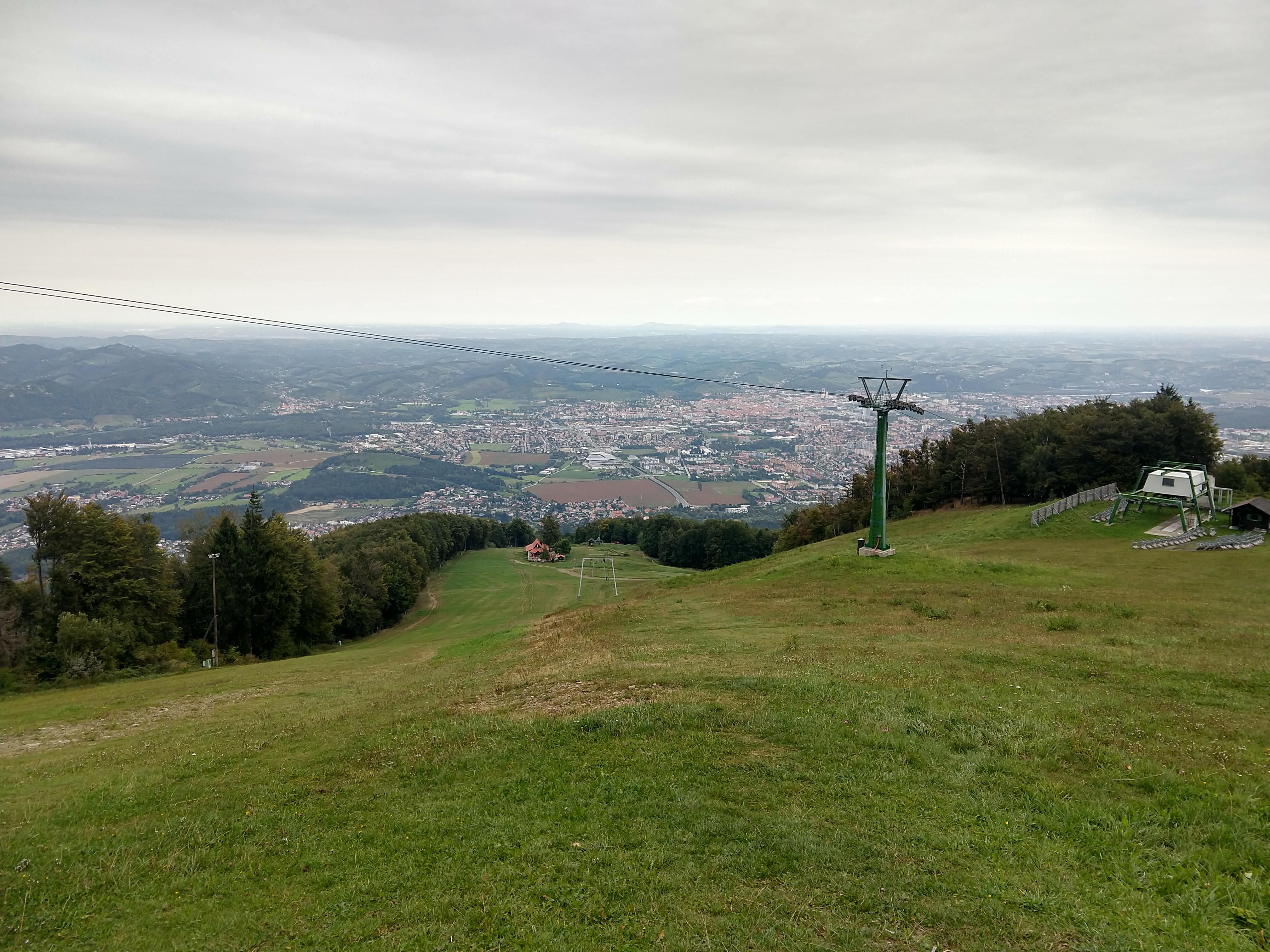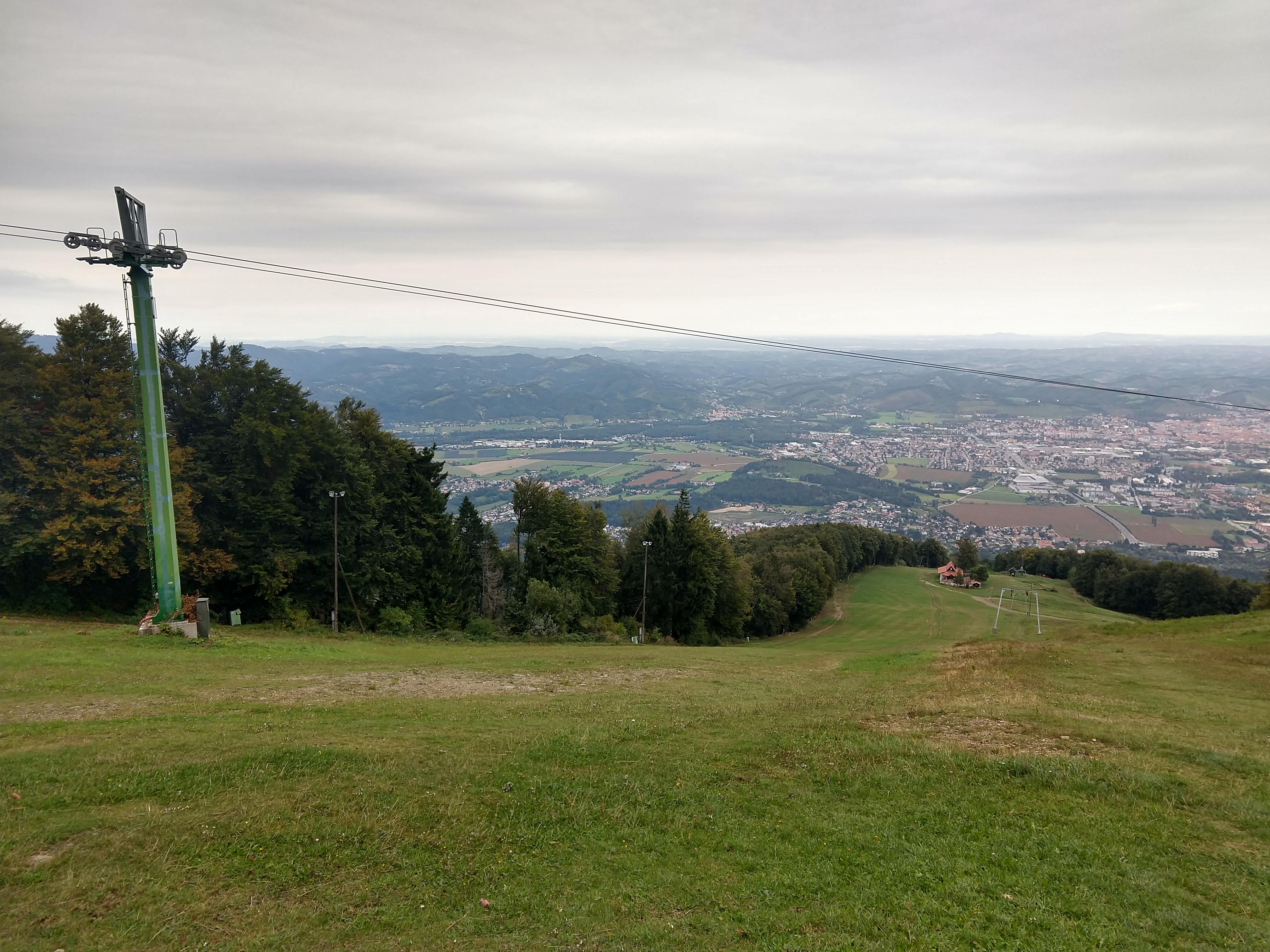 About 10 minutes of break time, I saddled up and continued on. At 1247PM, I arrived at Hotel Bellevue, which is the main ski lift/lodge area above Maribor from what I gathered. There are restaurants available but I decided to snack on my trail food instead. By this point my heart rate monitor was indicating I had burned 1902 calories. It was a good thing I consumed a lot of calories for breakfast, but if I was to sustain for the day it would be important to take in calories periodically. The photos below capture the views along the way to Mariborska Koča.