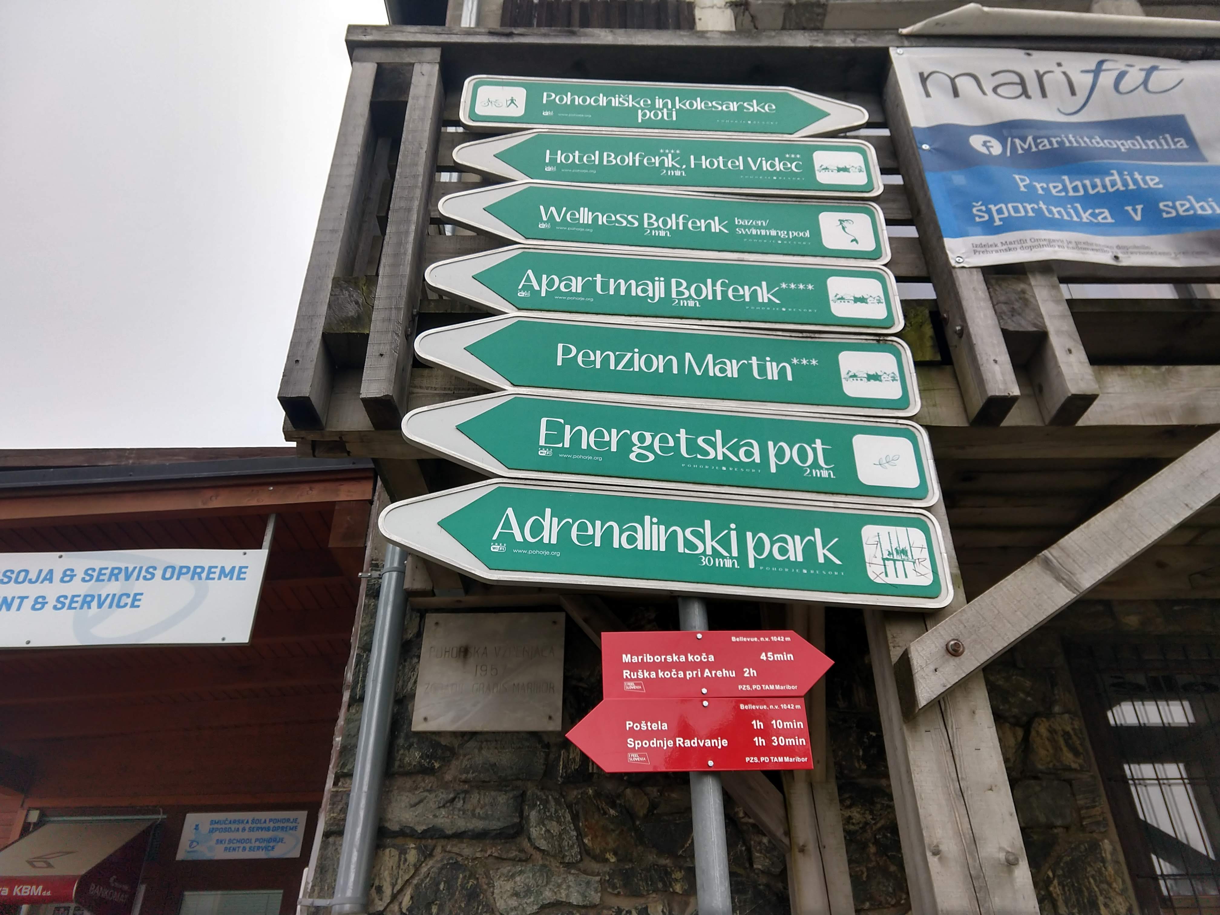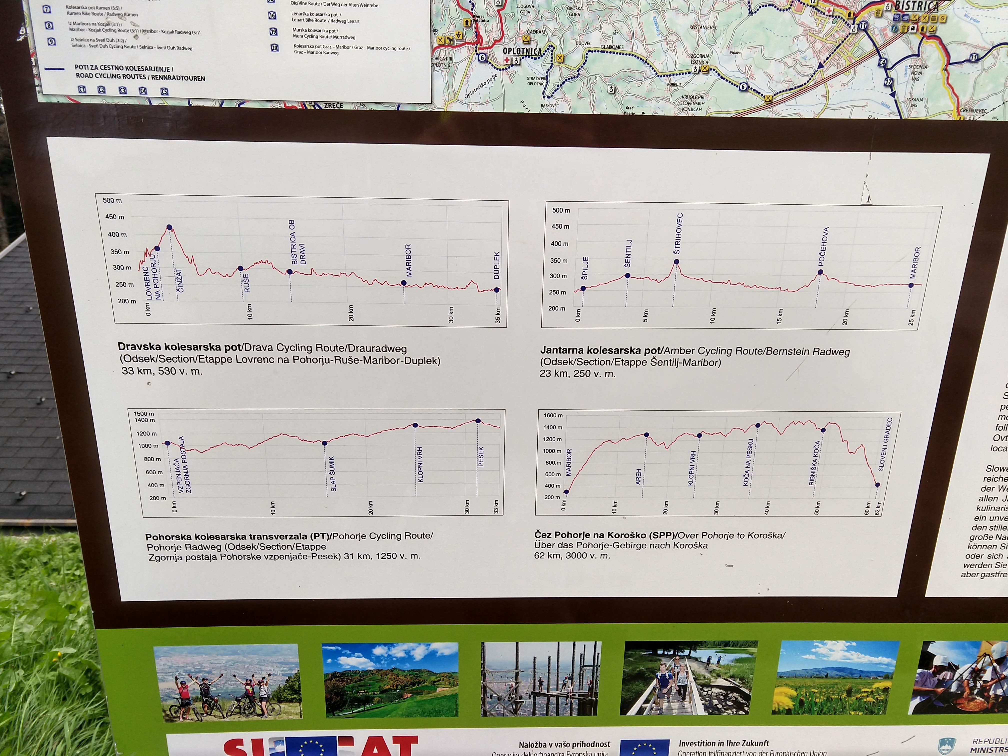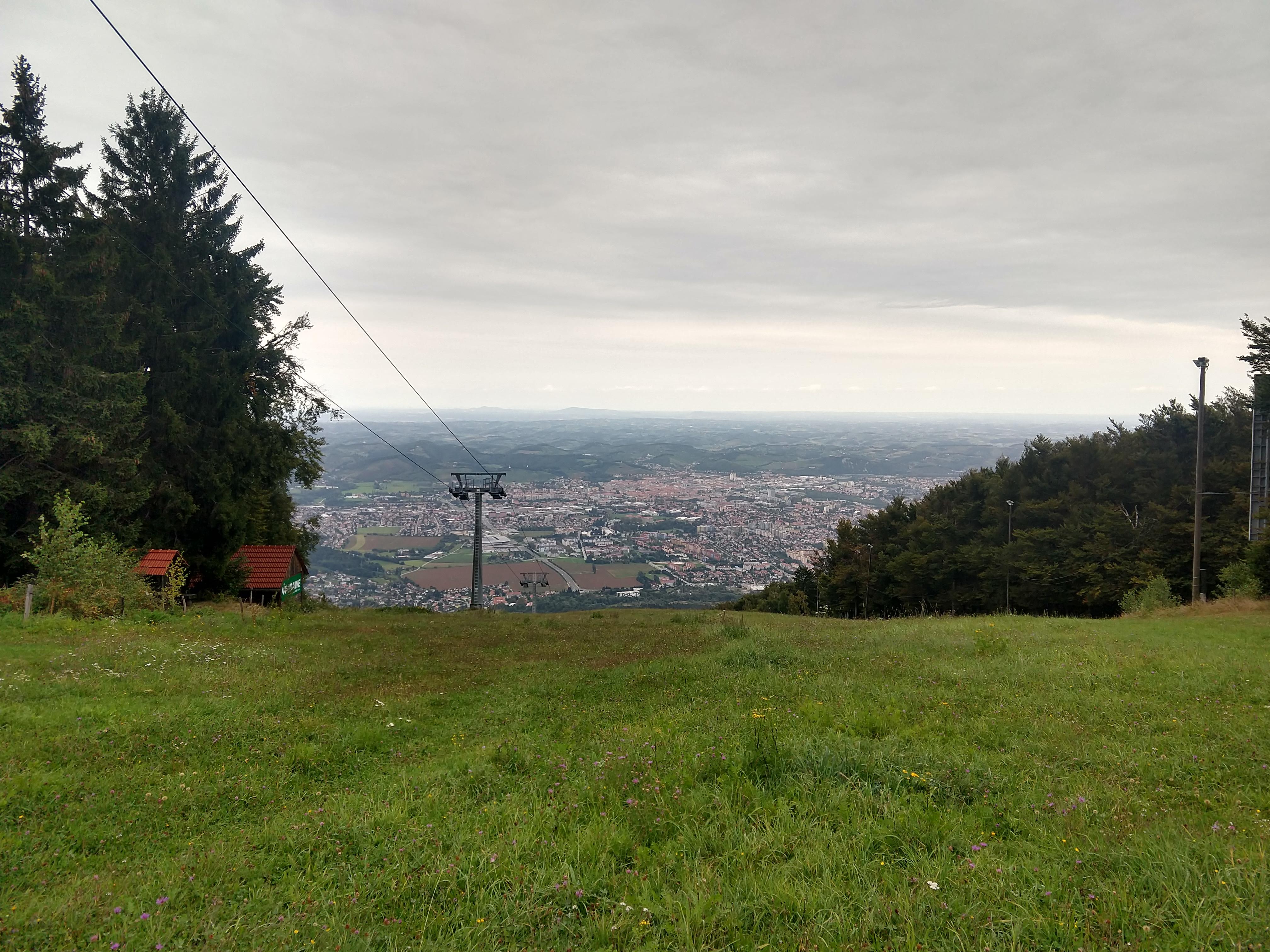 About 10 minutes of break time, I saddled up and continued on. At 1247PM, I arrived at Hotel Bellevue, which is the main ski lift/lodge area above Maribor from what I gathered. There are restaurants available but I decided to snack on my trail food instead. By this point my heart rate monitor was indicating I had burned 1902 calories. It was a good thing I consumed a lot of calories for breakfast, but if I was to sustain for the day it would be important to take in calories periodically. The photos below capture the views along the way to Mariborska Koča.
