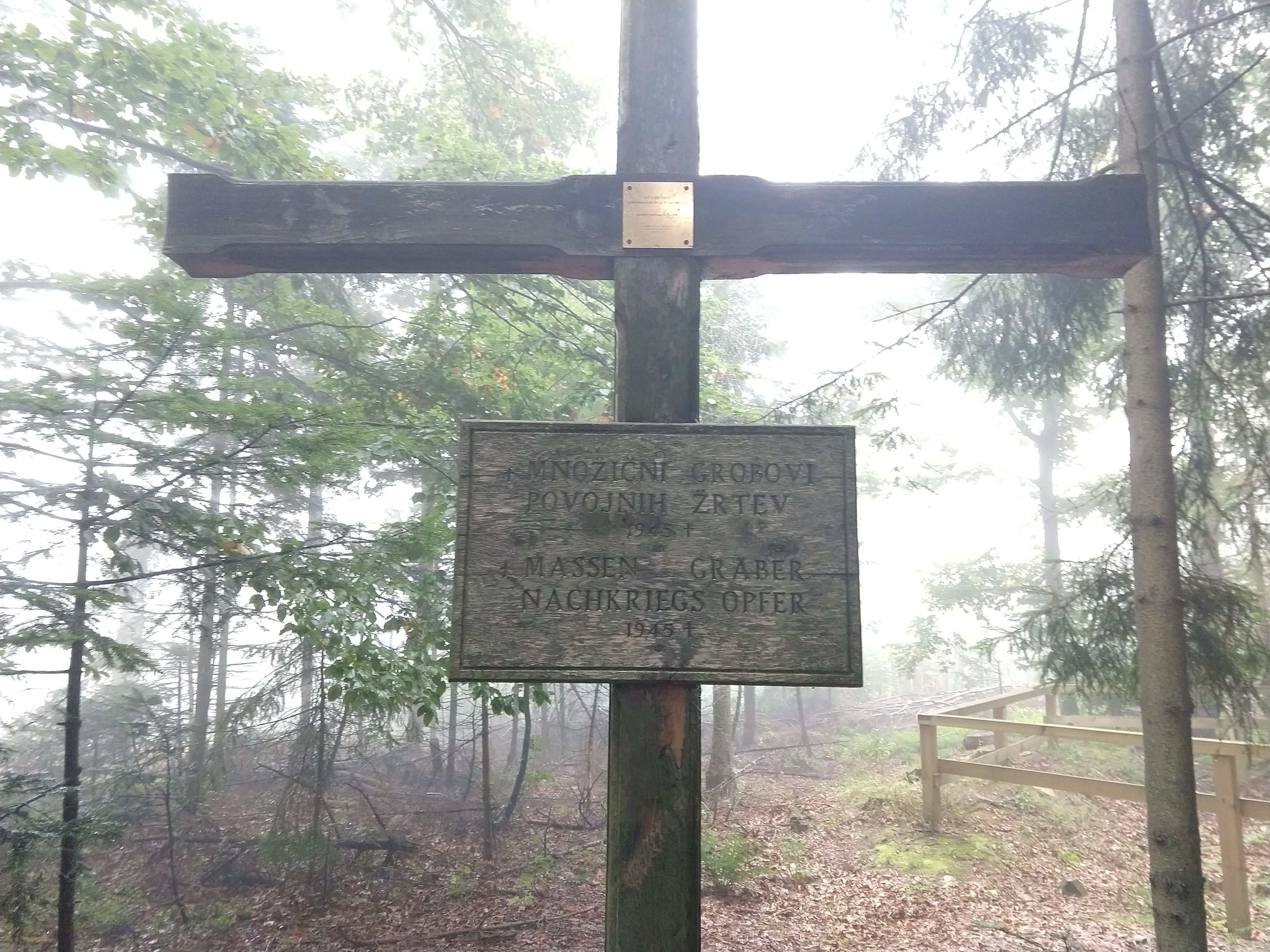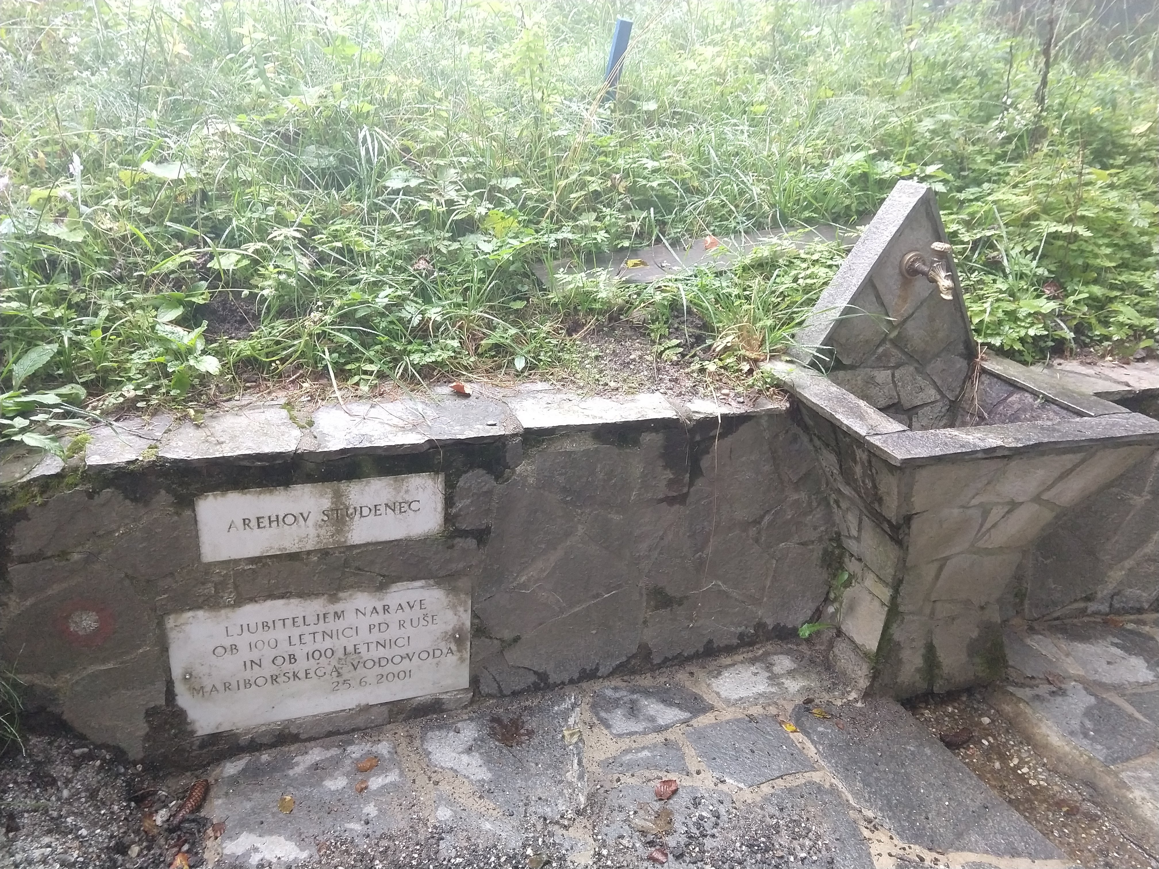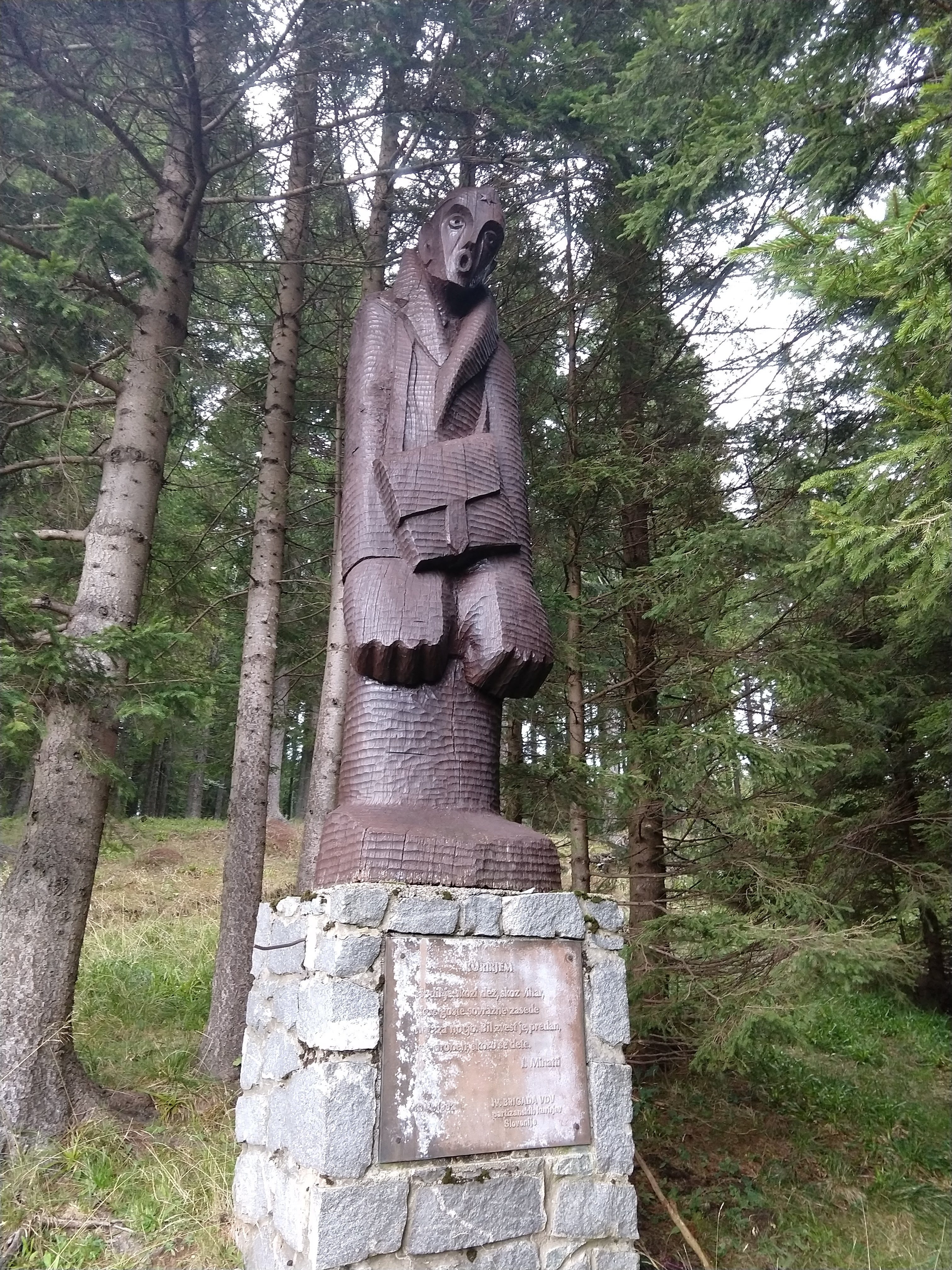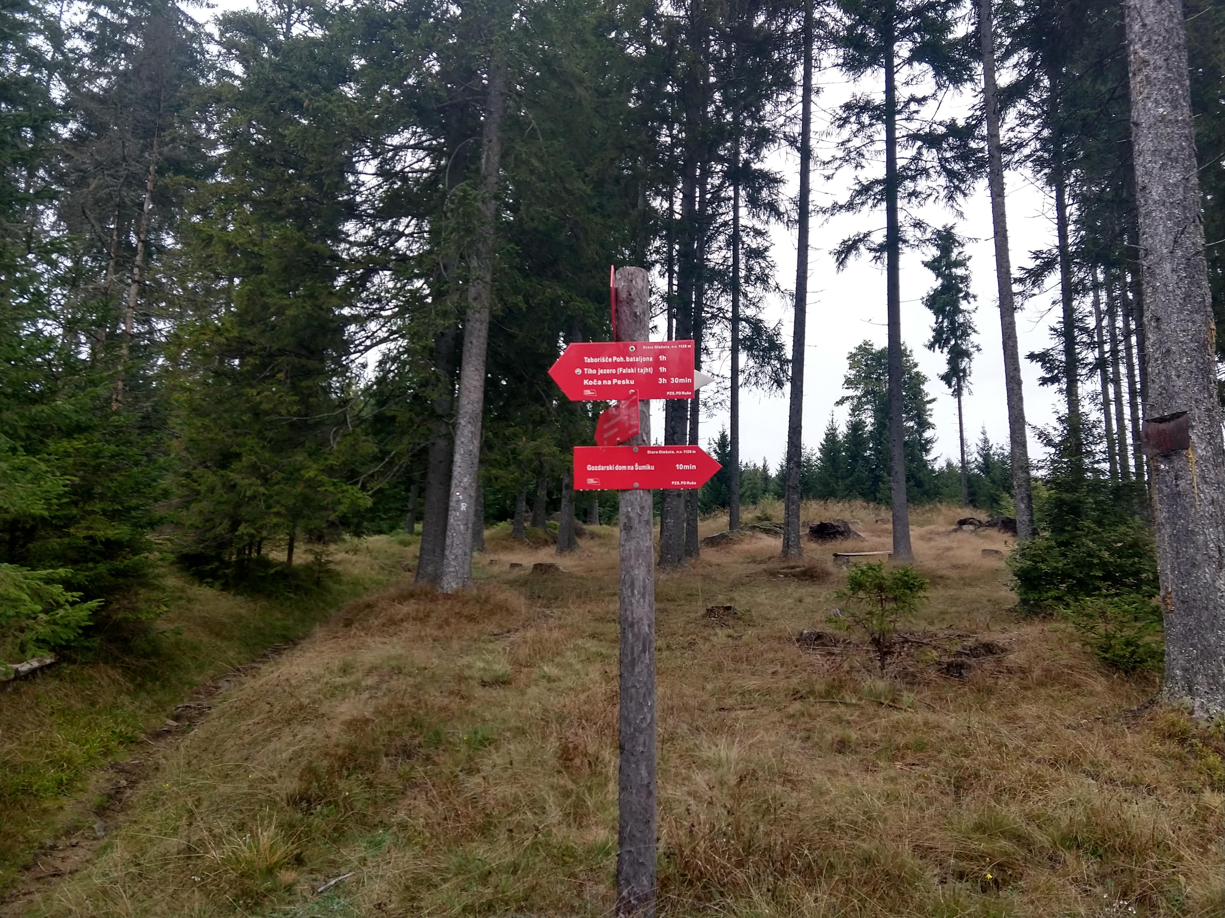 My next destination was Ruška Koča pri Arehu, which the sign indicated would take about an hour or so. The photo gallery below depicts the views and scenery throughout this section. I arrived at the Ruška Koča around 1540. During this section, the visibility drastically changed and become quite foggy but the slight drop in temperature felt good. During this portion I also passed by several mass grave sites and memorials at the burial sites.
