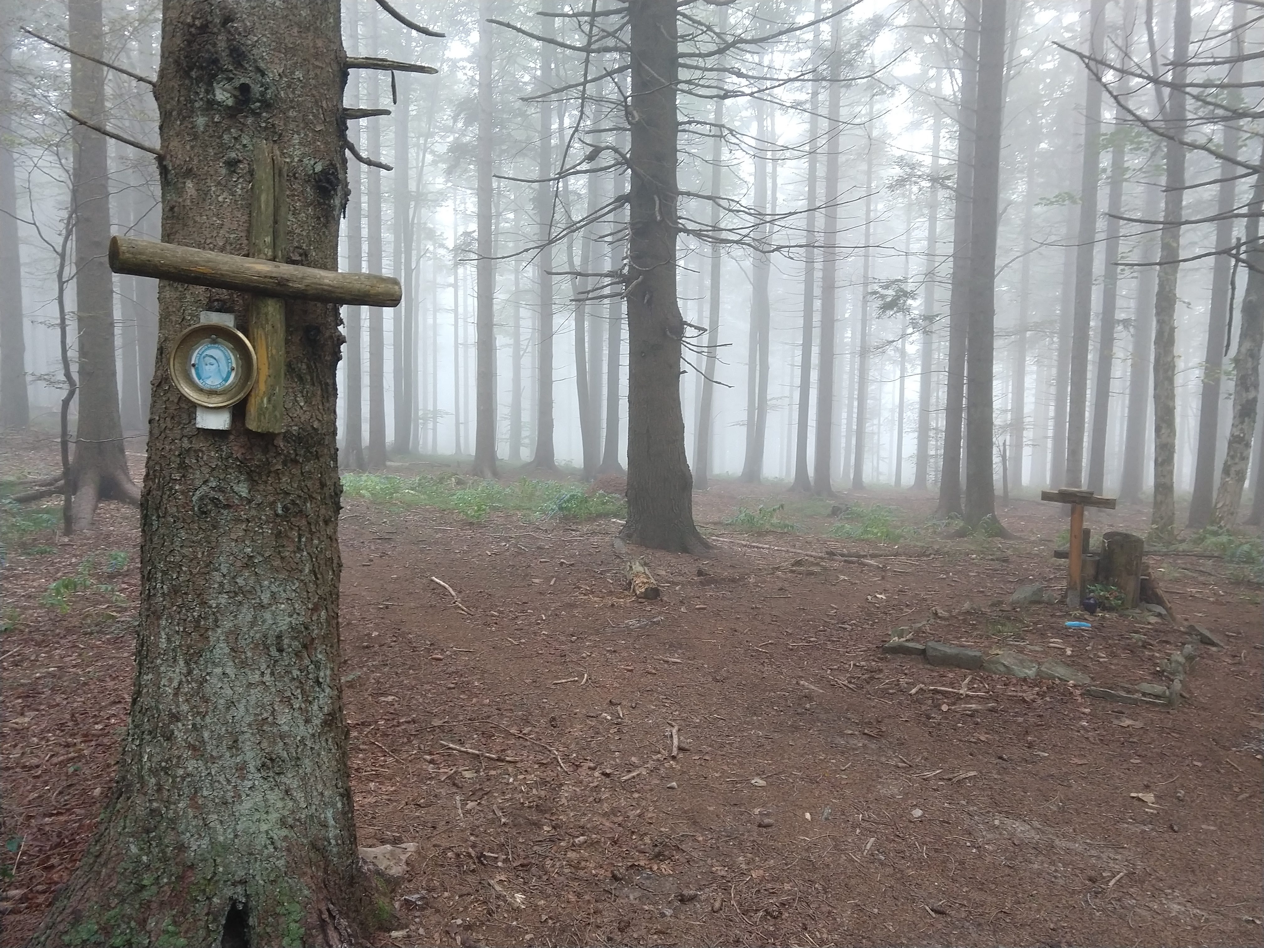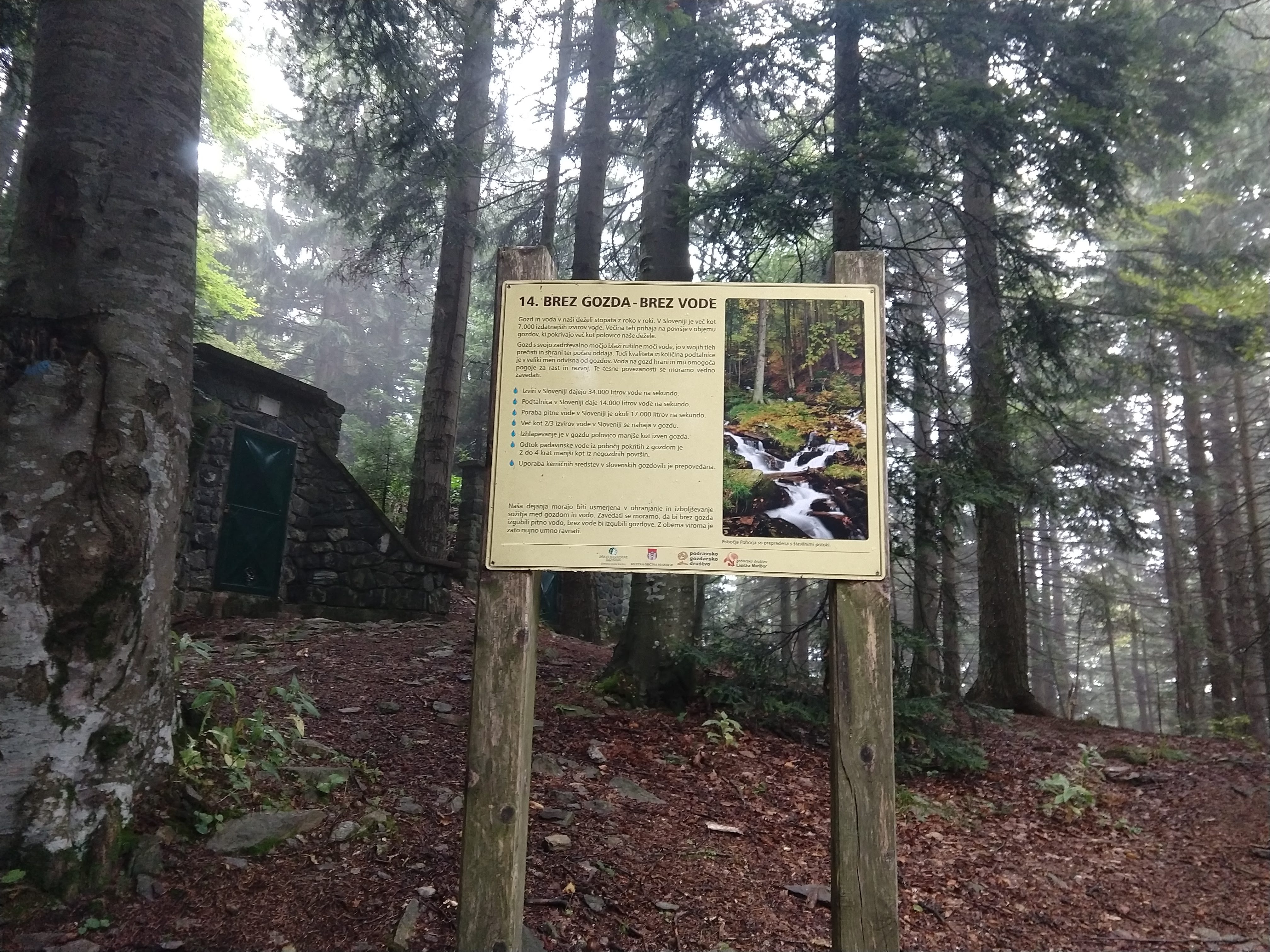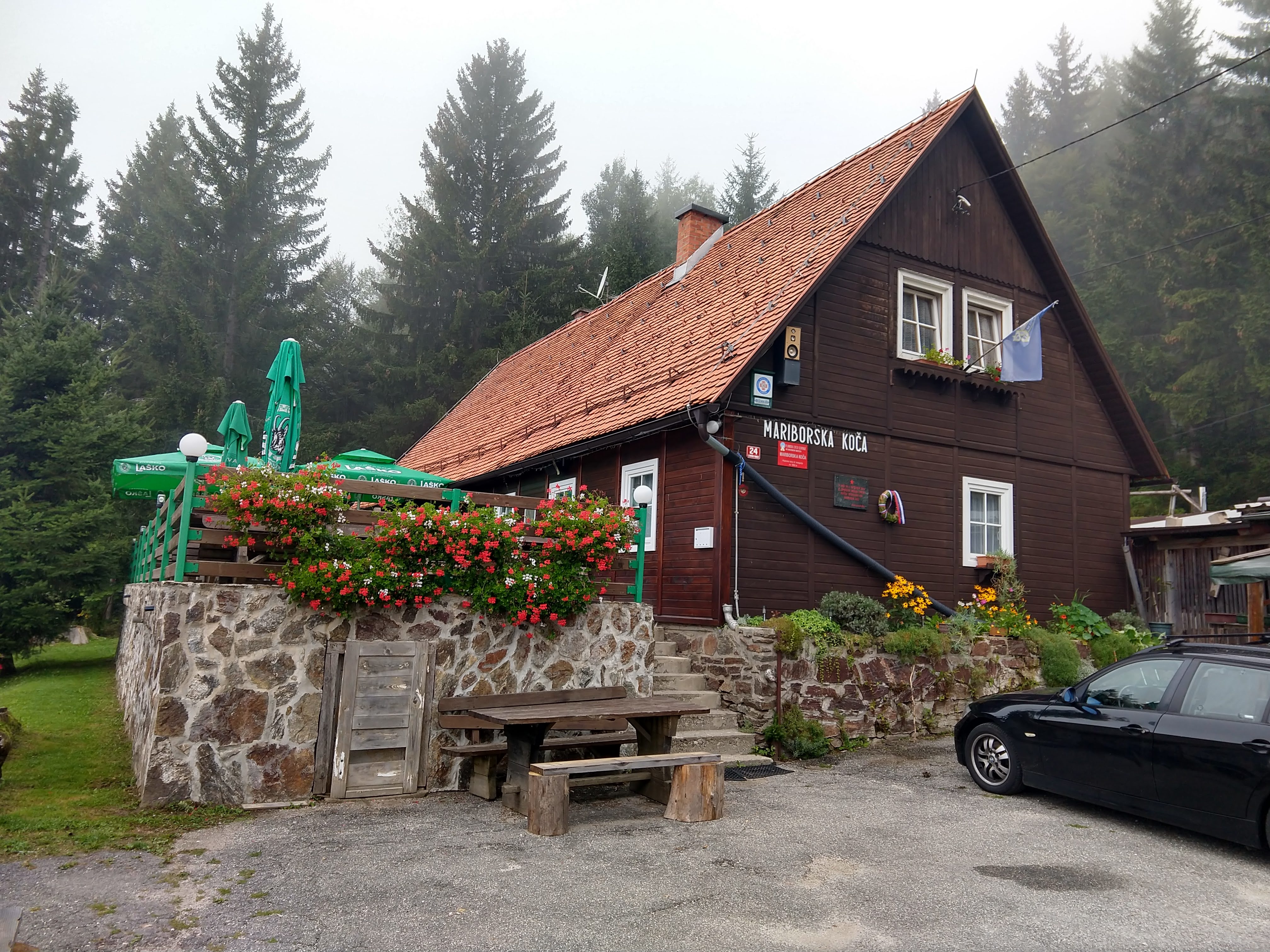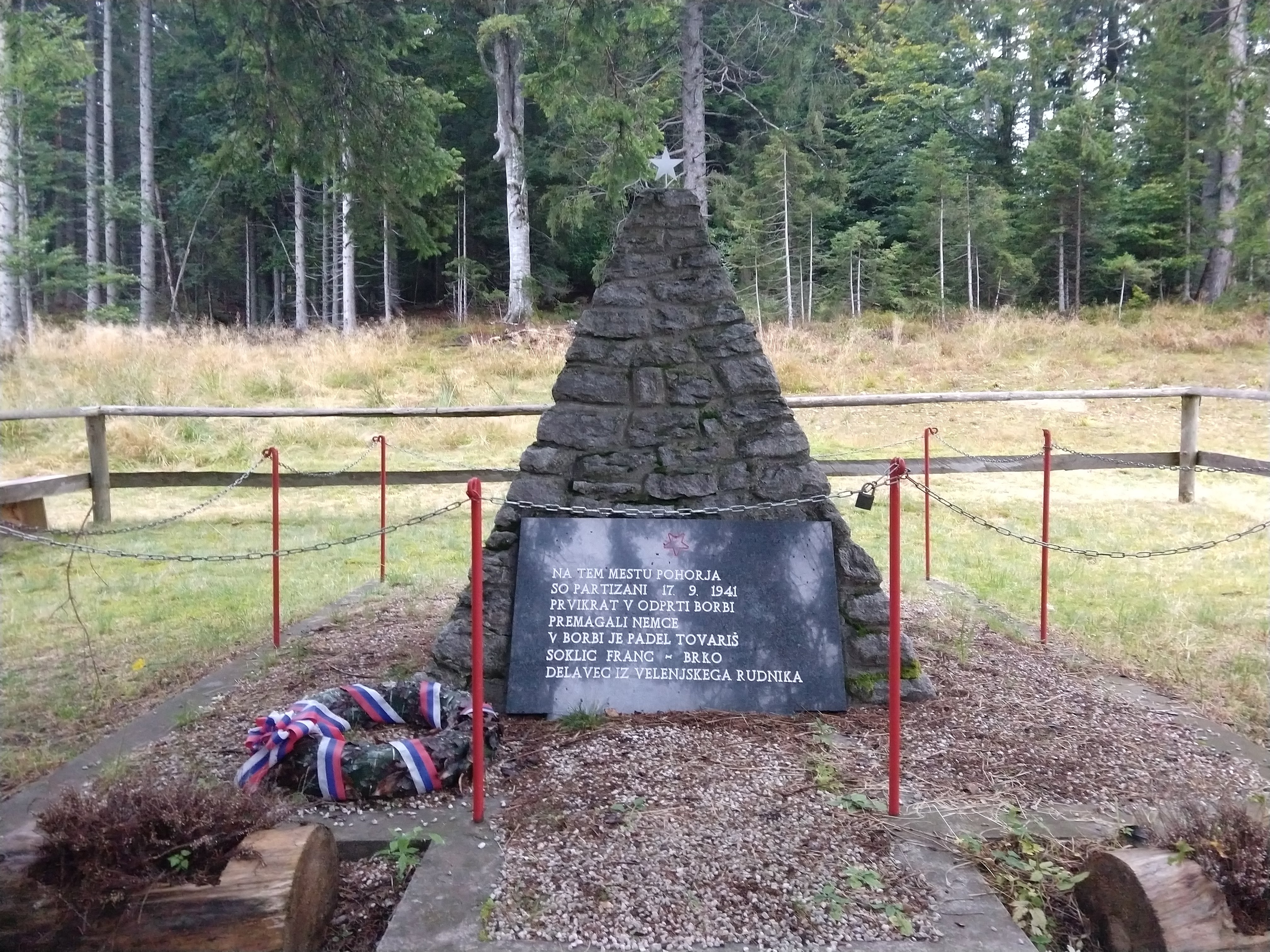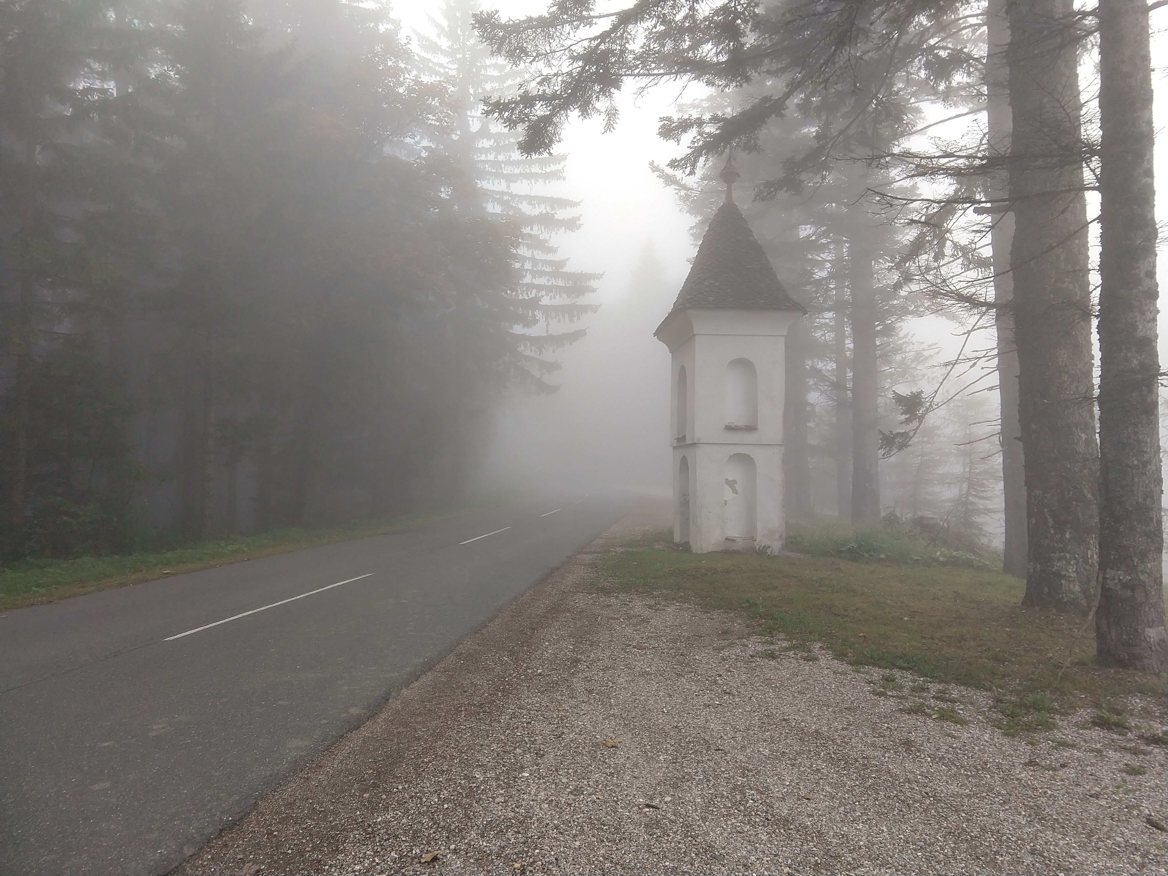 My next destination was Ruška Koča pri Arehu, which the sign indicated would take about an hour or so. The photo gallery below depicts the views and scenery throughout this section. I arrived at the Ruška Koča around 1540. During this section, the visibility drastically changed and become quite foggy but the slight drop in temperature felt good. During this portion I also passed by several mass grave sites and memorials at the burial sites.