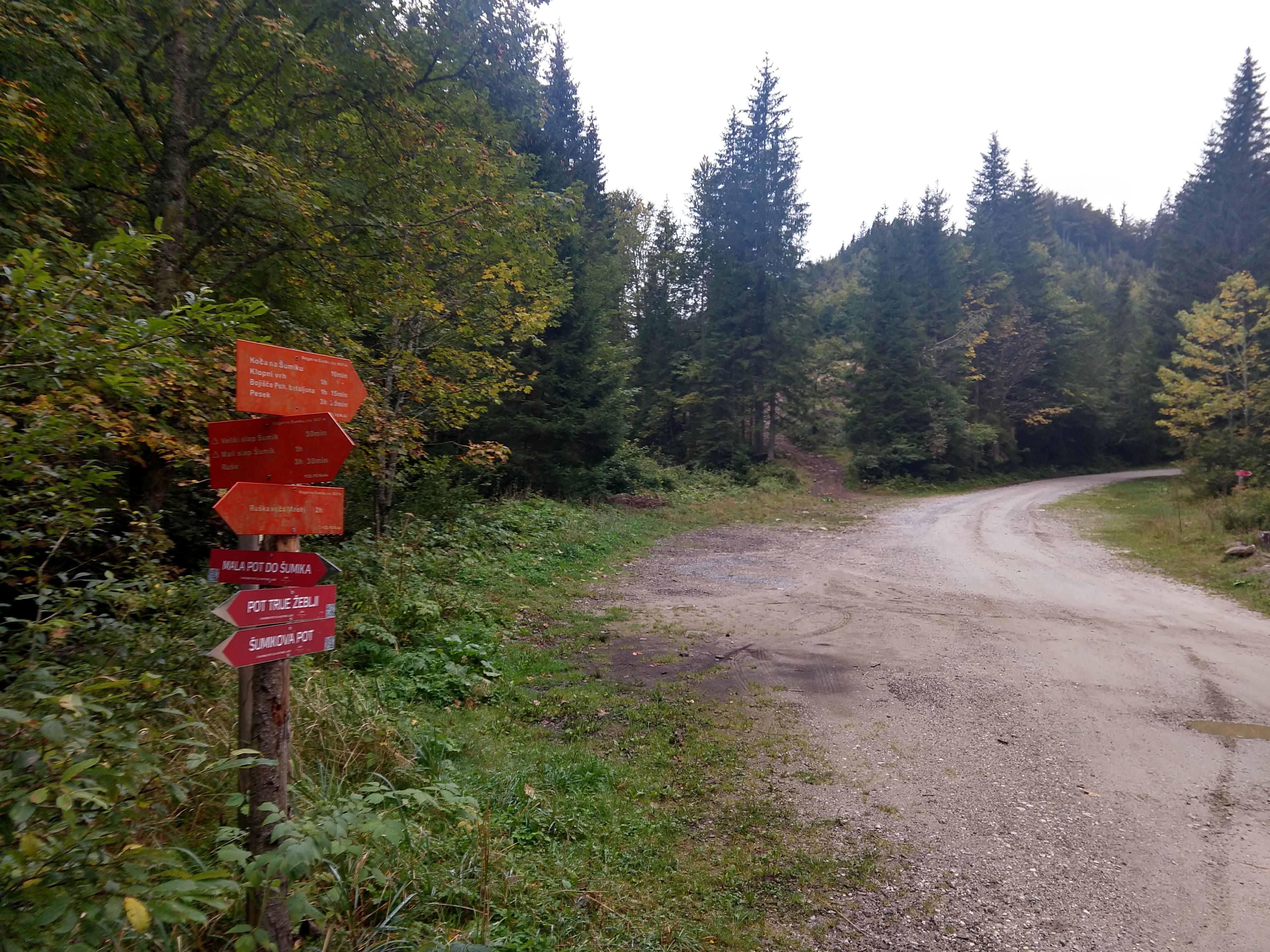 Šumik appeared to be a picnic area so I did not spend anytime lingering around and was more focused on getting to Koča na Pesku preferably before it got too late. During my post trip look back in writing on this section, I missed the nearby waterfall and the Koča Šumik, which was up the road a little bit from where I turned off from.